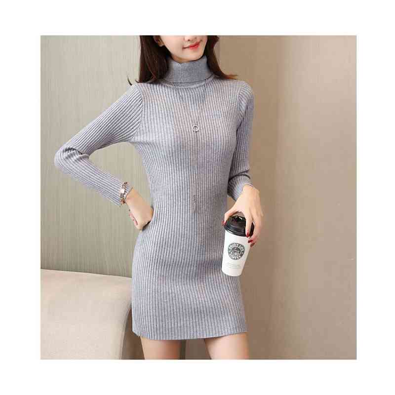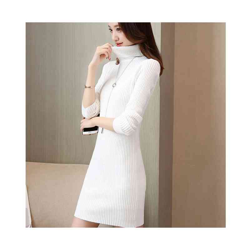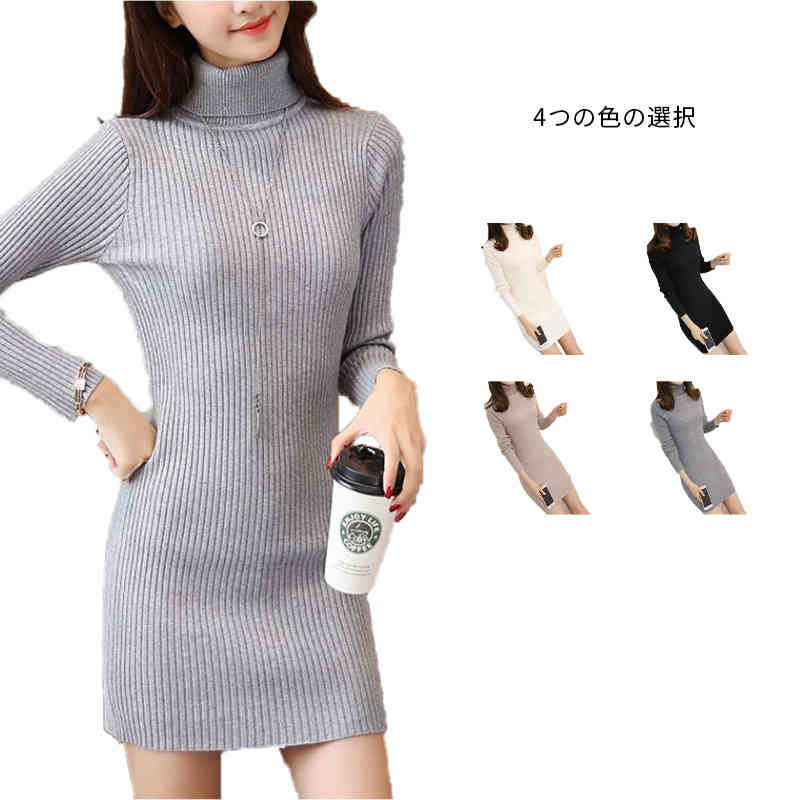 マキシワンピース 長袖 ハイネック ニ ワンピース 新登場! ホワイト ブラック ベージュ グレー S M L XL 2XL