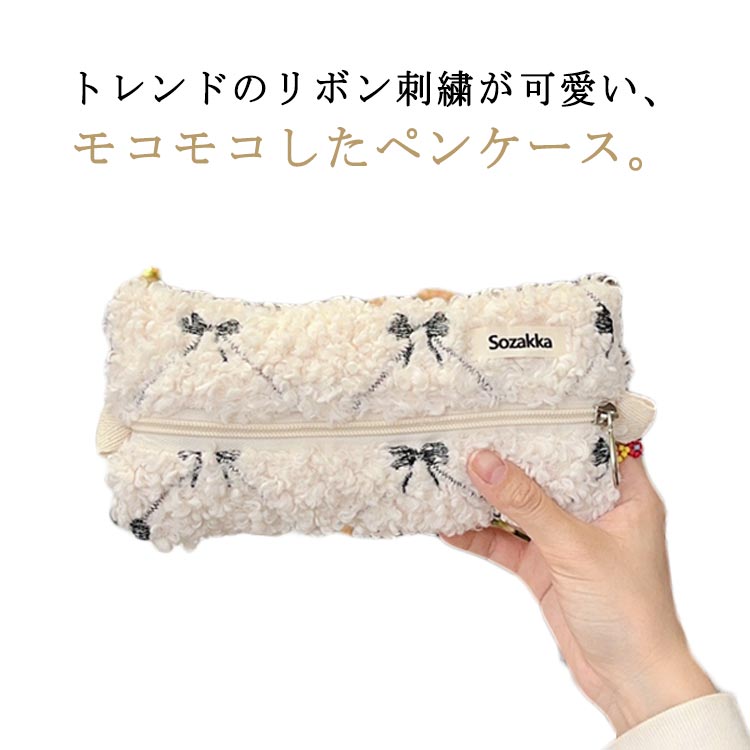ペンケース かわいい リボン刺繍 もこ 文房具 事務用品 筆記具 ペンケース 通販