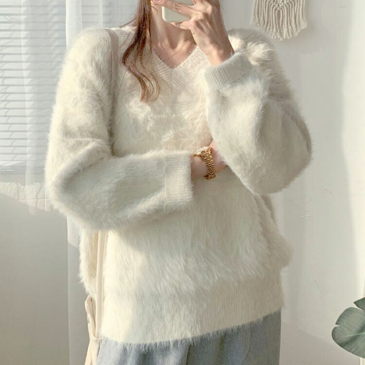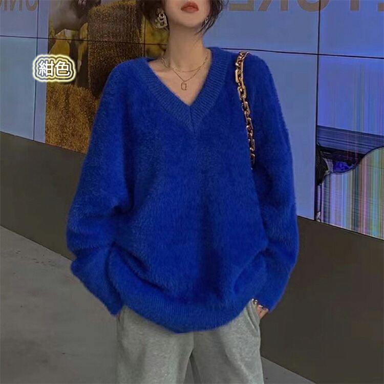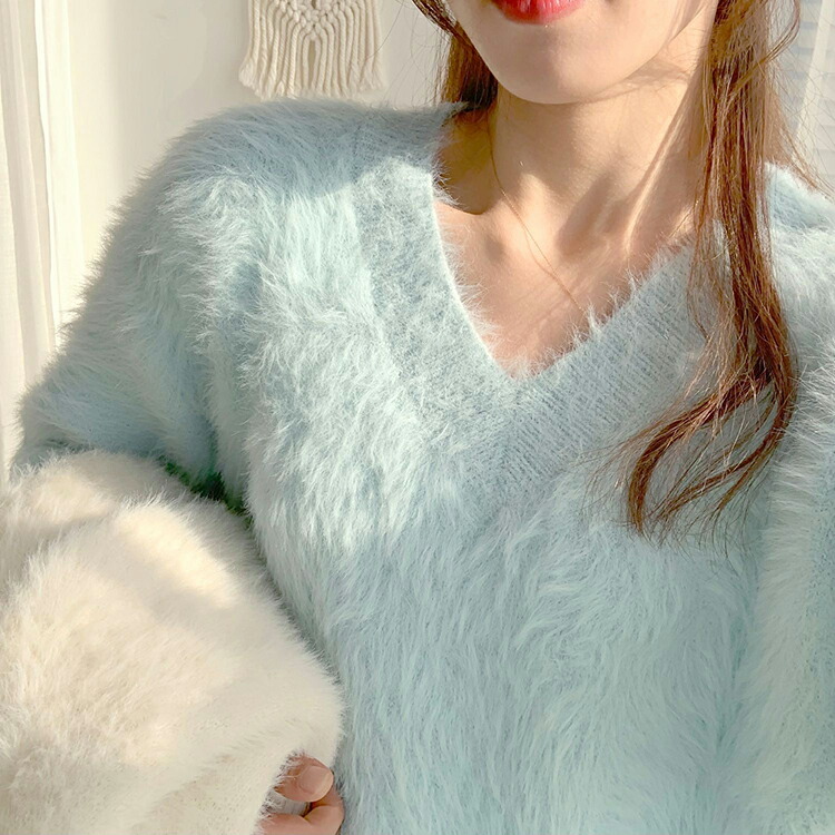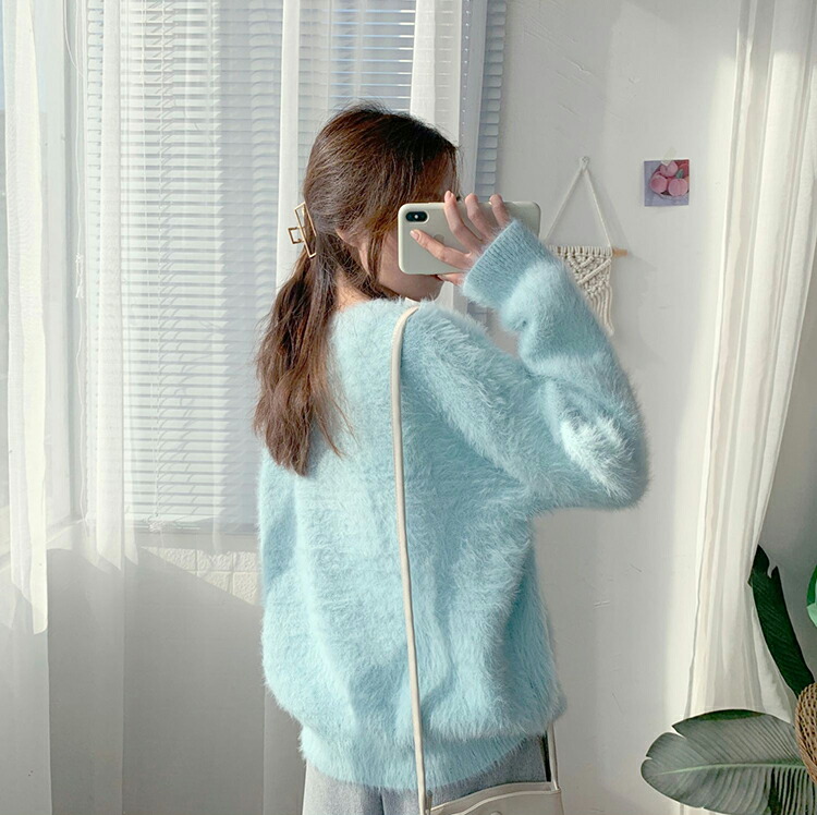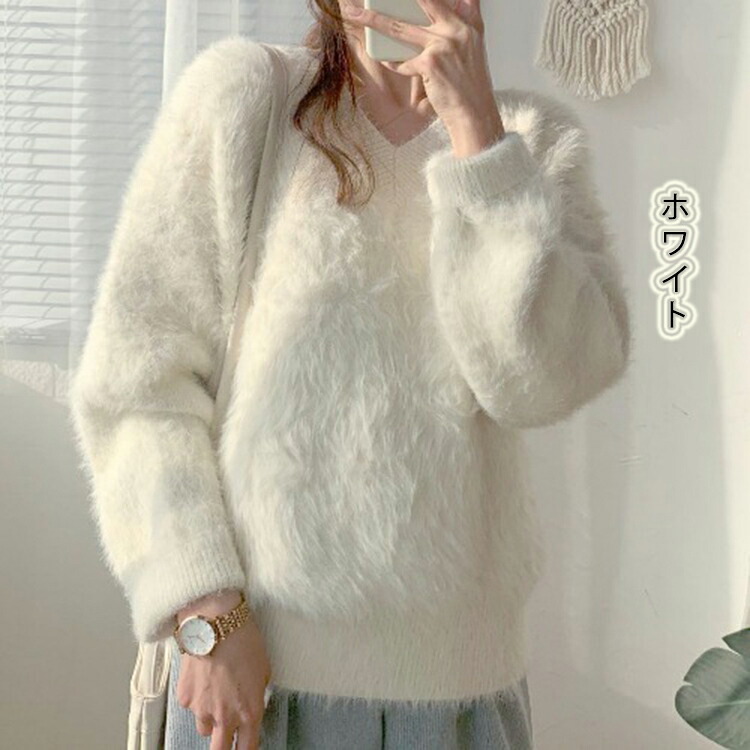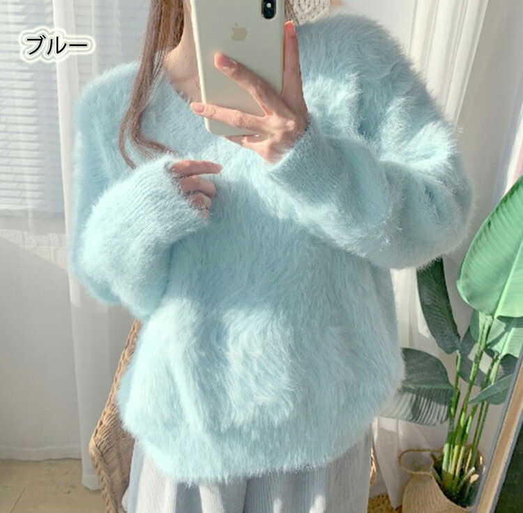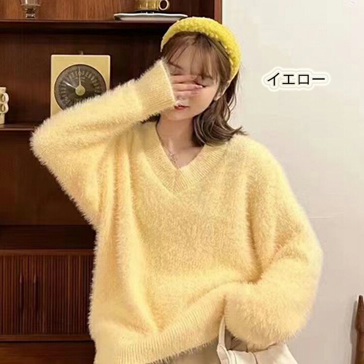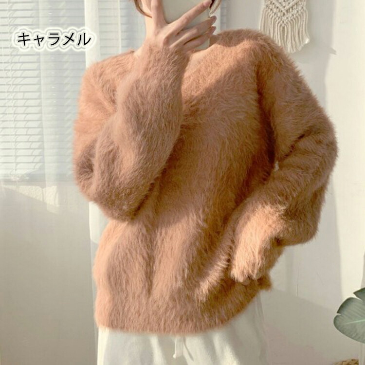 シャギー ニット セーター プルオーバ レディースファッション 早い者勝ち ブラック ホワイト ブルー イエロー キャラメル 紺色
