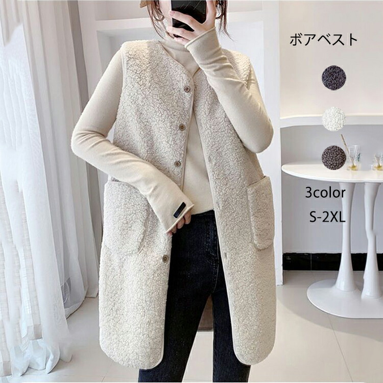 ボアベスト レディース ロング チョッ レディースファッション 豊富な品揃え ベージュ ダークカーキ ライトカーキ S M L XL 2XL