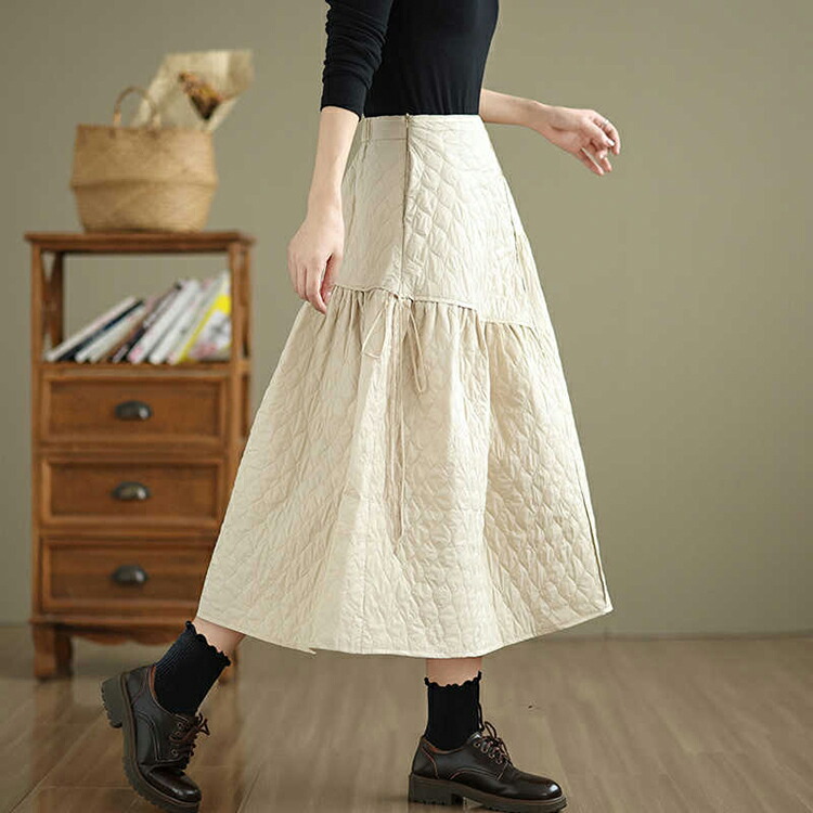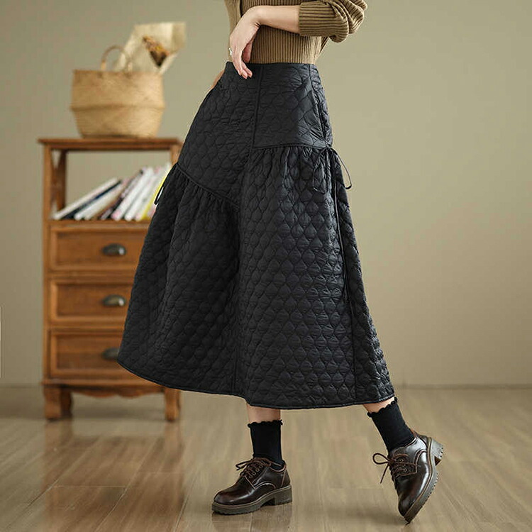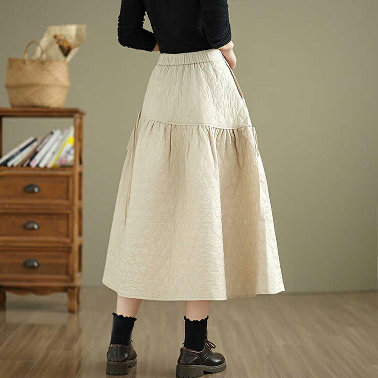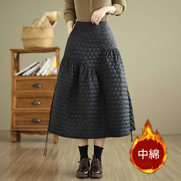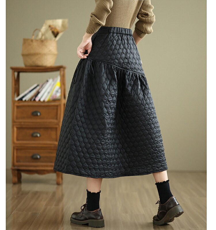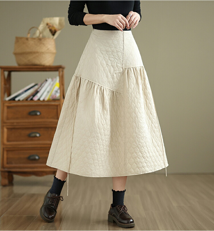 キルティングスカート フレア スカート レディースファッション 通販 ブラック ベージュ M L XL 2XL