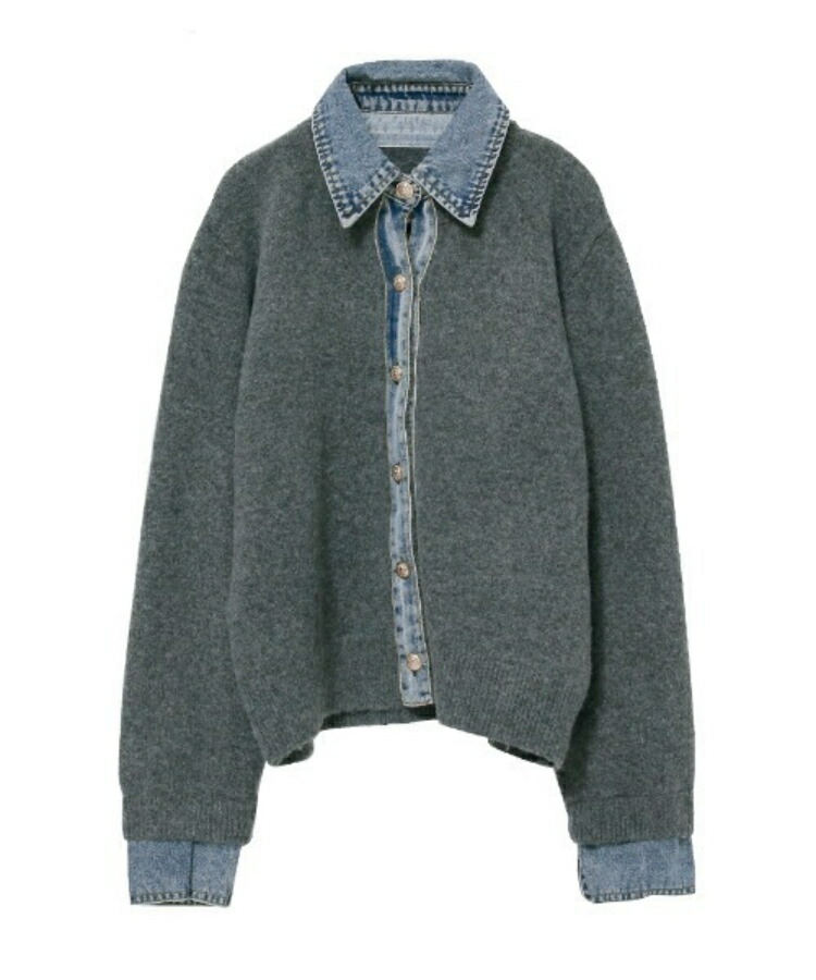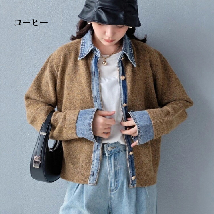 デニム ニット カーディガン ドッキン トップス カーディガン ボレロ 続々入荷中 ライトグレー ダークグレー コーヒー 紺色