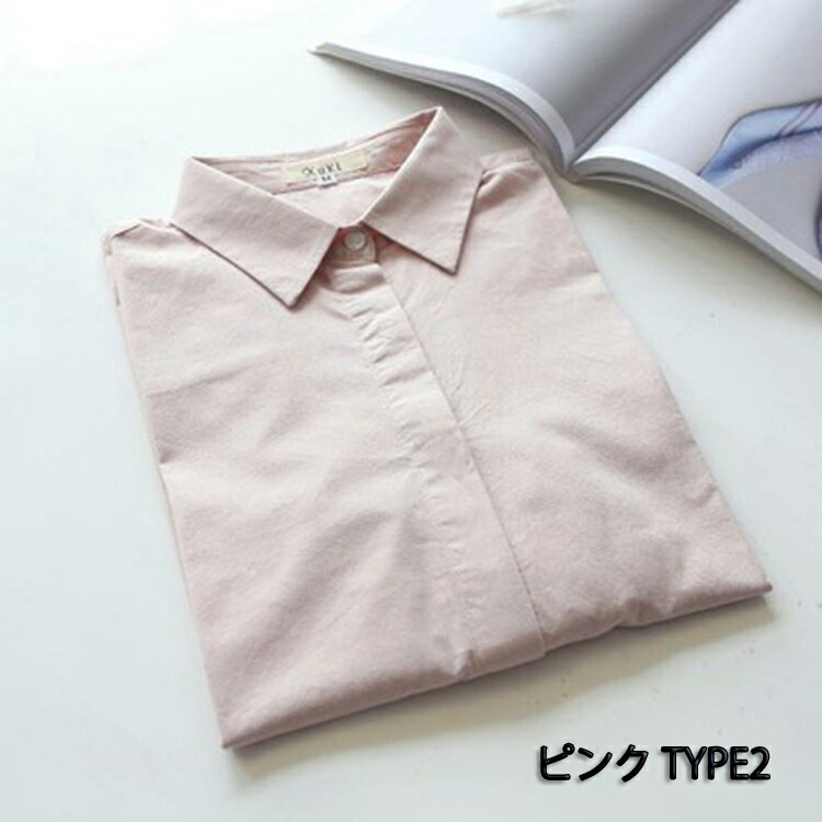 長袖シャツ 綿100% レディース 春 レディースファッション 超目玉商品 ホワイト TYPE1 ピンク TYPE1 ブルー TYPE1 ホワイト TYPE2 ピンク TYPE2 ブルー TYPE2 S M L XL 2XL