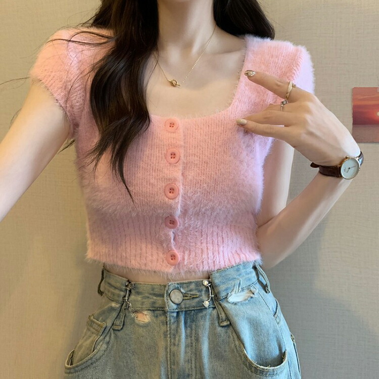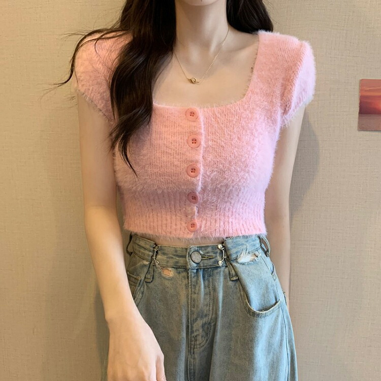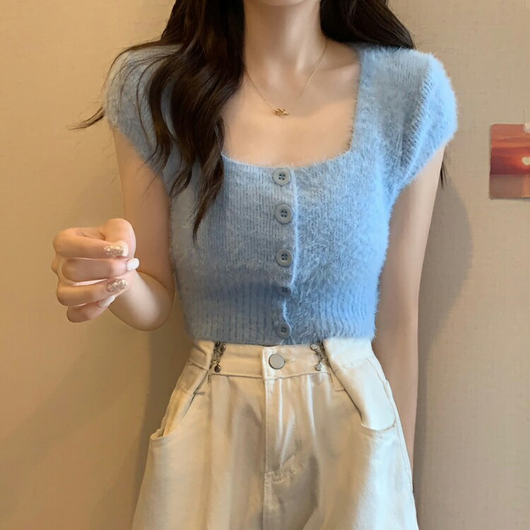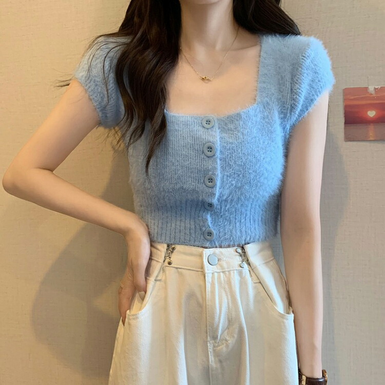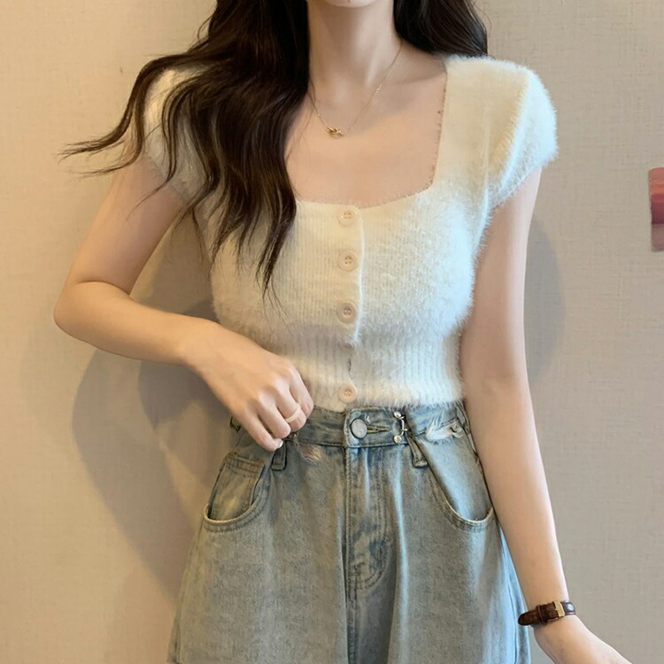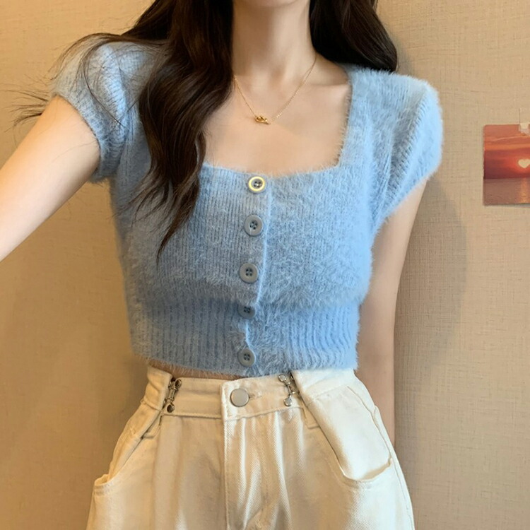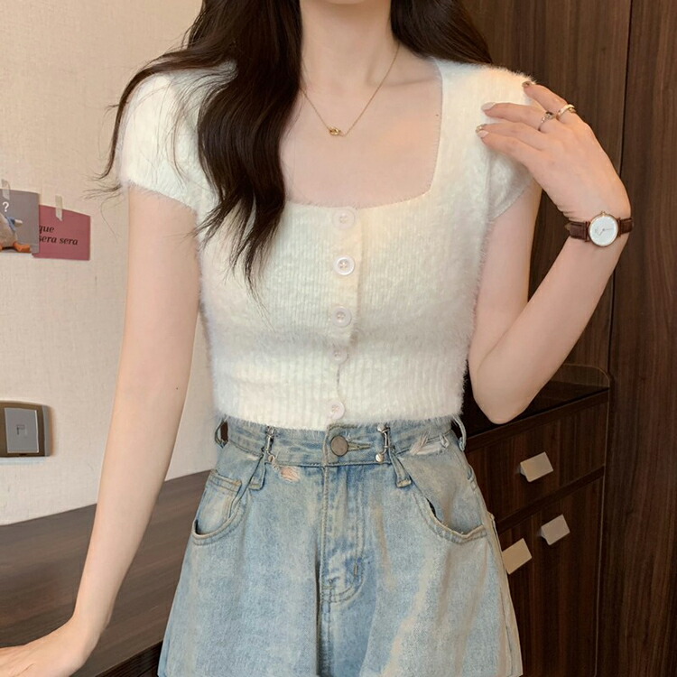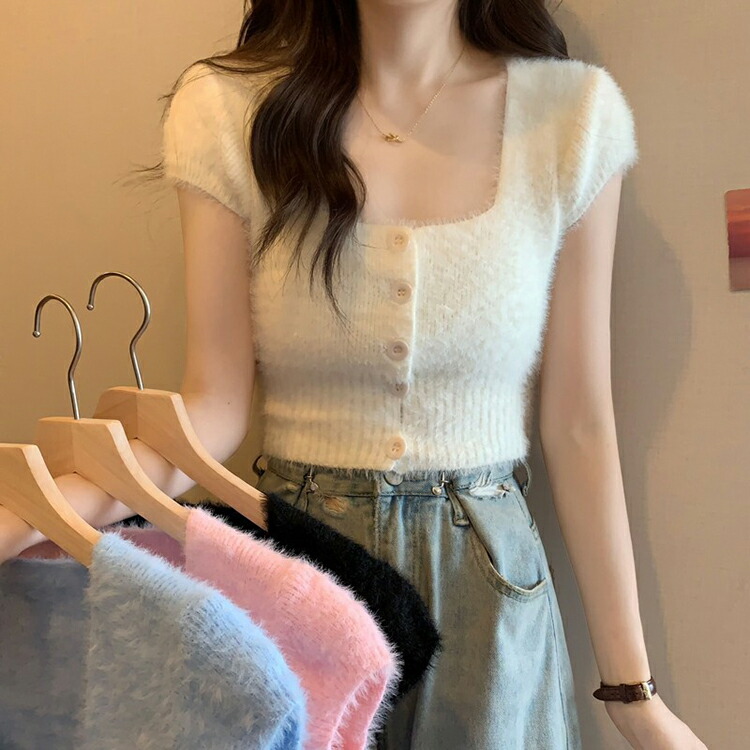 シャギー ニット 半袖 レディース 女 トップス Tシャツ カットソー 特集 ホワイト ブラック ピンク ブルー