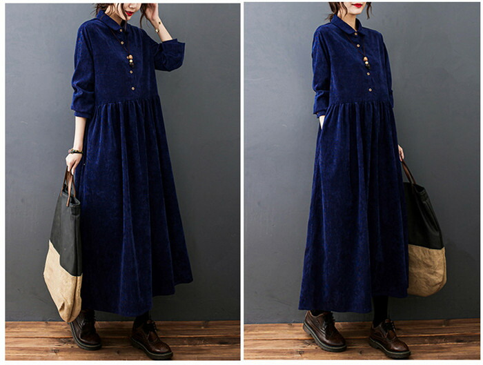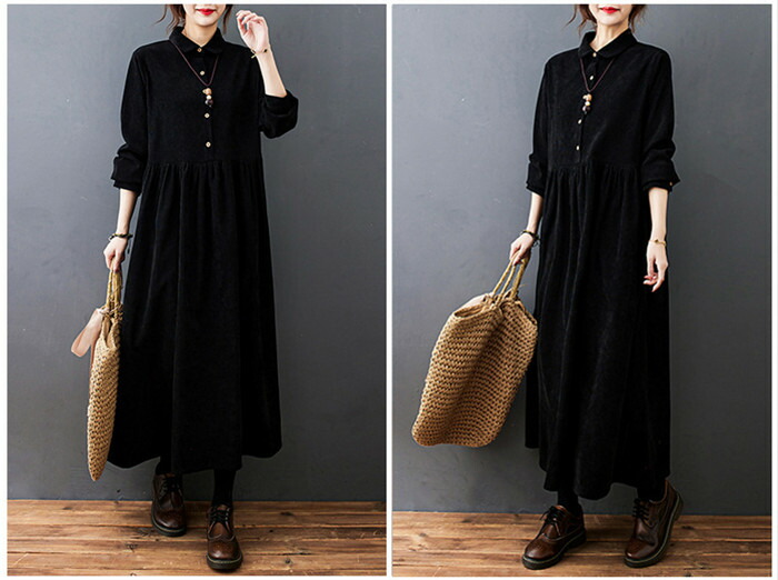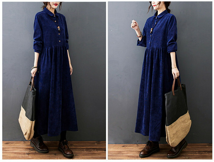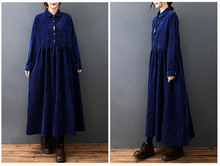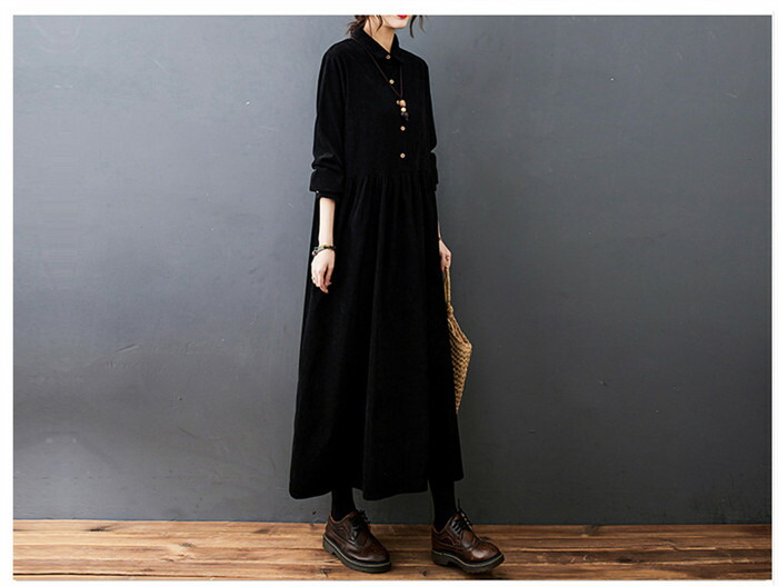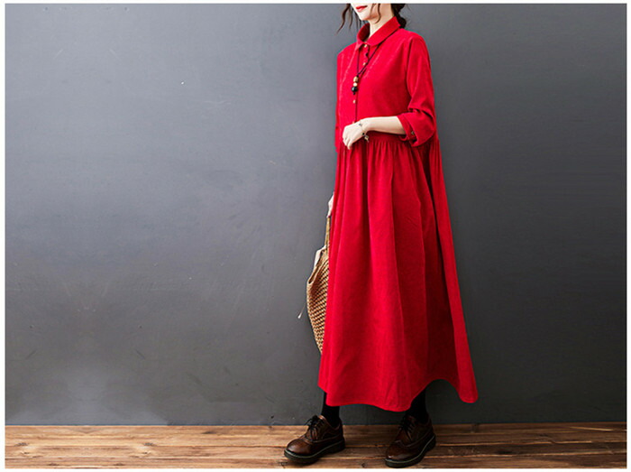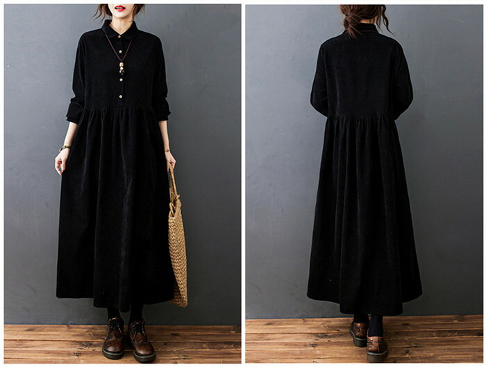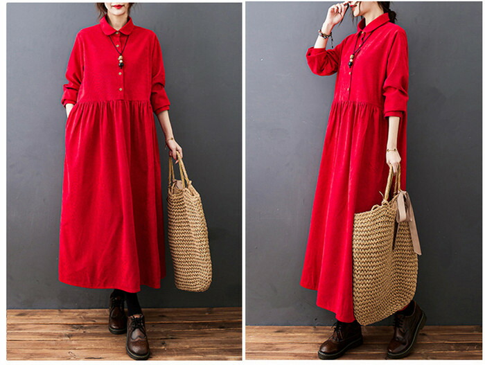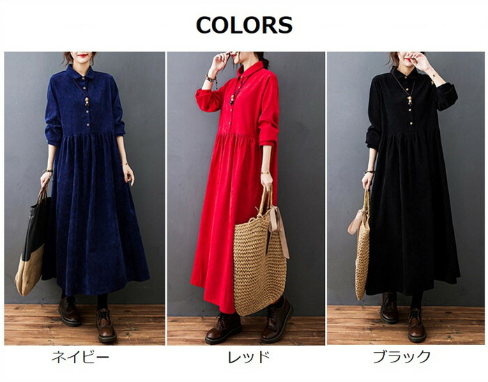 ロングワンピース コーデュロイ レディ ワンピース 超目玉商品 2XL M L XL レッド ブラック ネイビー