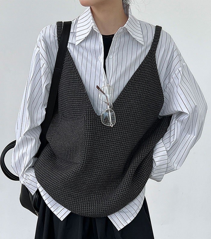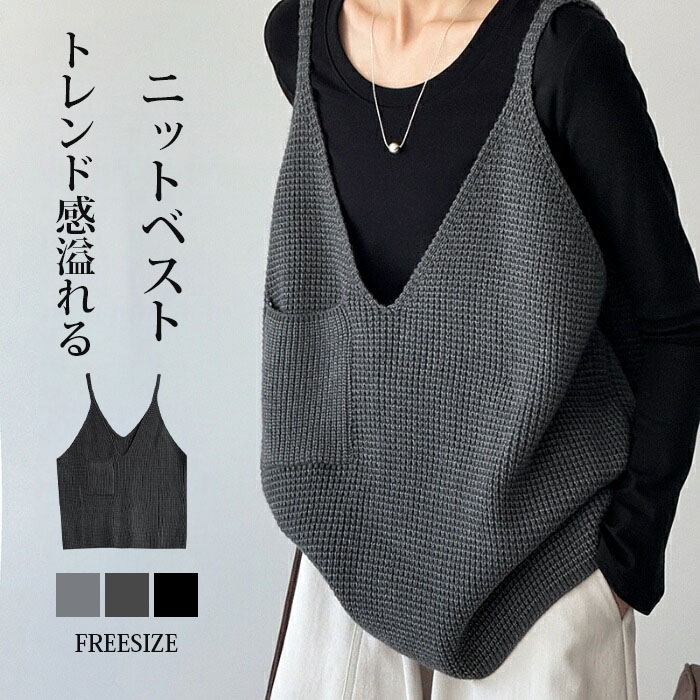 ニットベスト レディース ベスト vネ レディースファッション 早い者勝ち ダークグレー ライトグレー ブラック