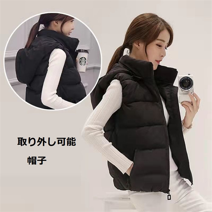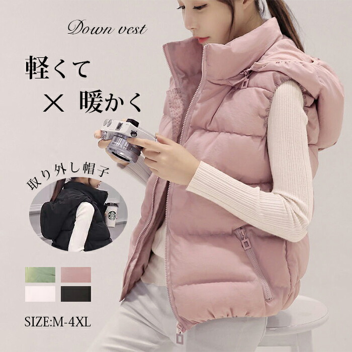 ダウンベスト レディース フード付き レディースファッション 早い者勝ち M L XL 2XL 3XL 4XL ブラック ホワイト ピンク グリーン