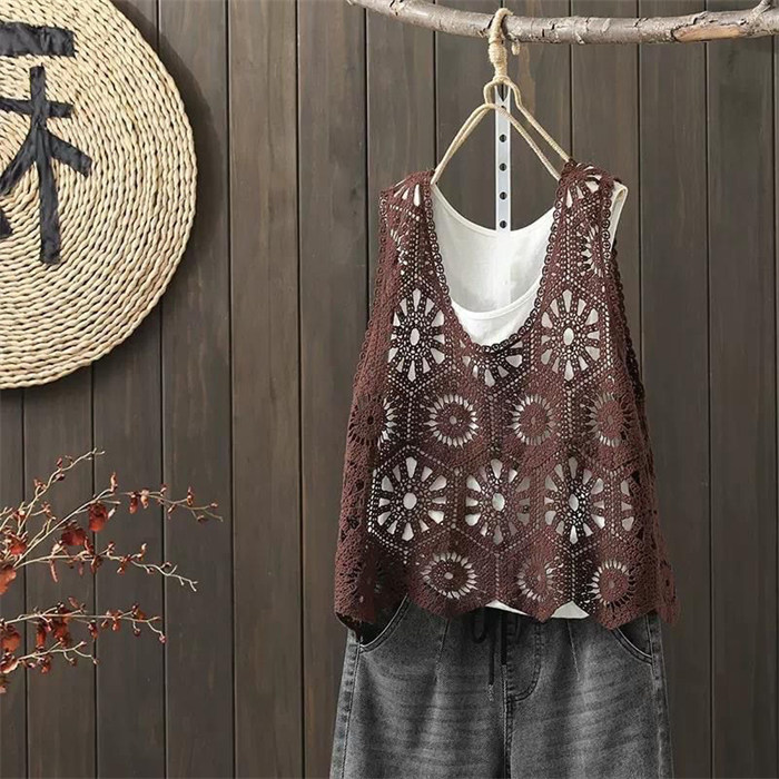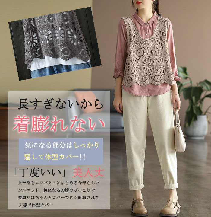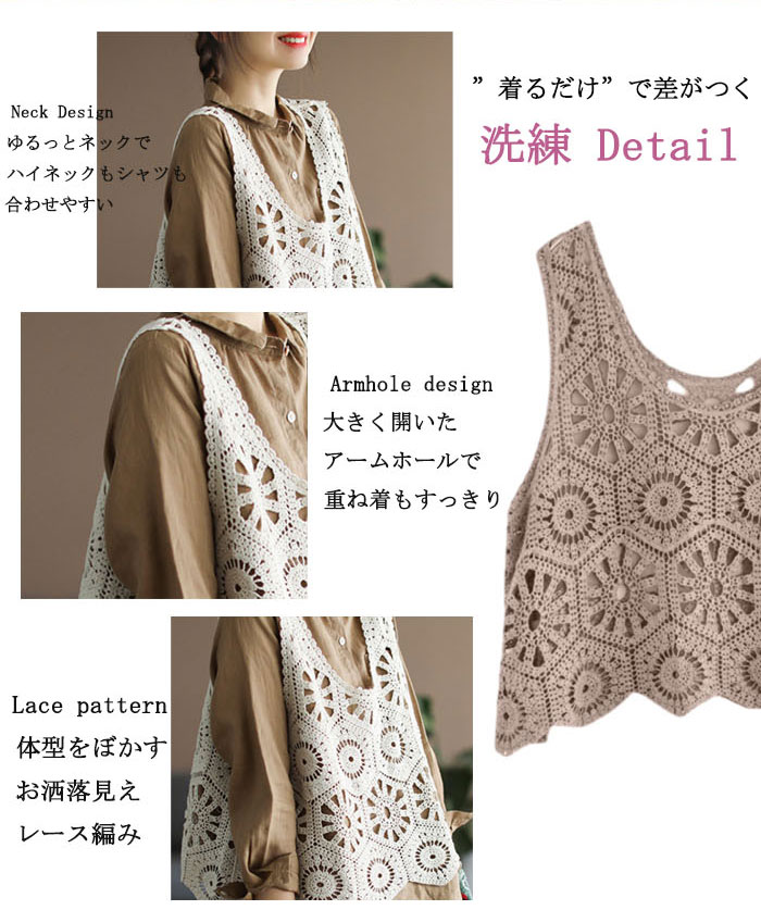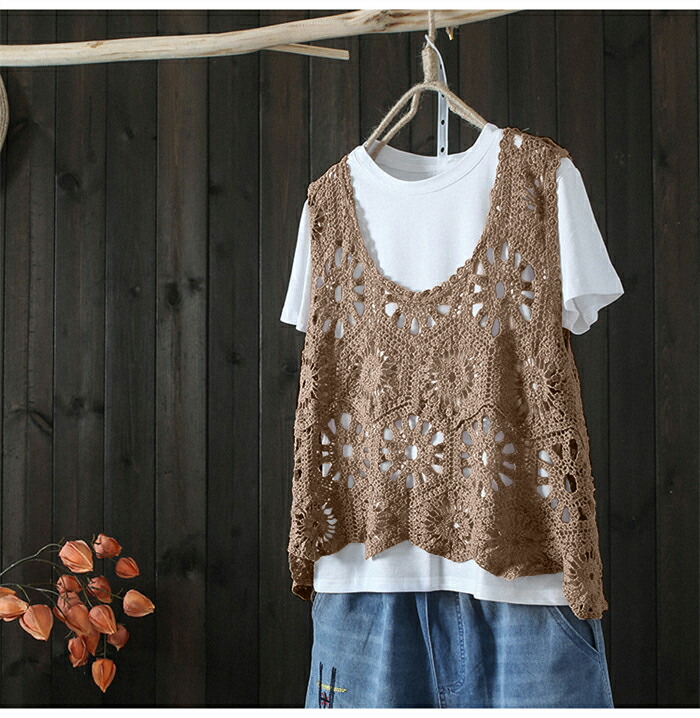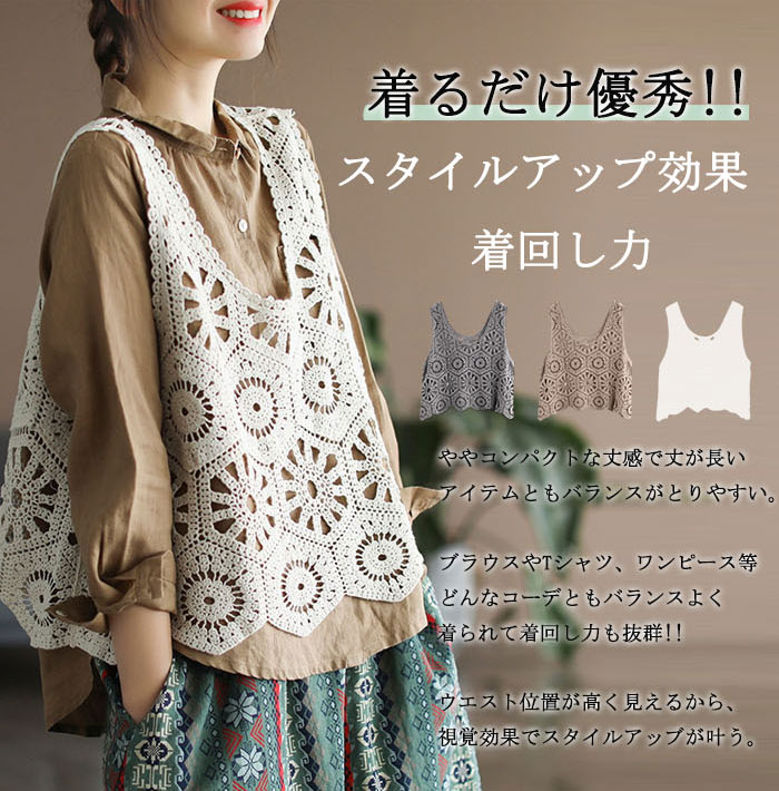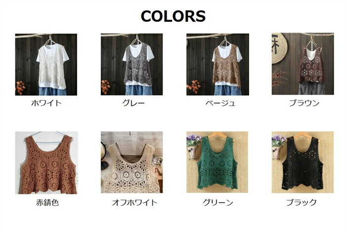 ベスト レディース 夏 トップス 透か レディースファッション 豊富 グレー ベージュ ホワイト オフホワイト コーヒー グリーン 赤錆色 ブラック