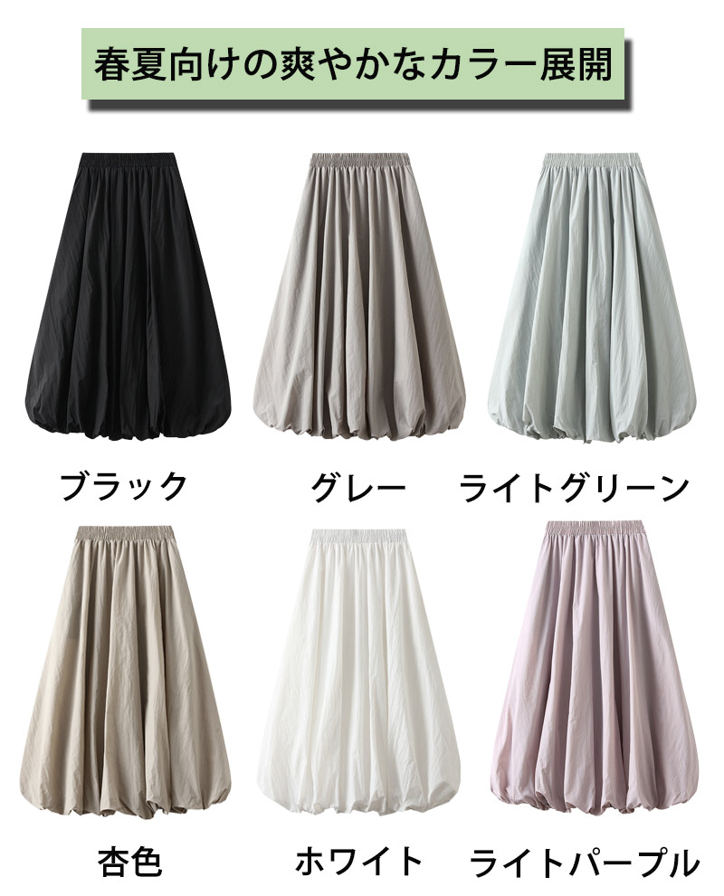 バルーンスカート レディース 春 切り ボトムス スカート 特集 ブラック グレー 紺色 グリーン ベージュ ブラック(春夏) ライトグリーン(春夏) 杏色(春夏) ホワイト(春夏) グレー(春夏) ライトパープル(春夏) ブルー(春夏)
