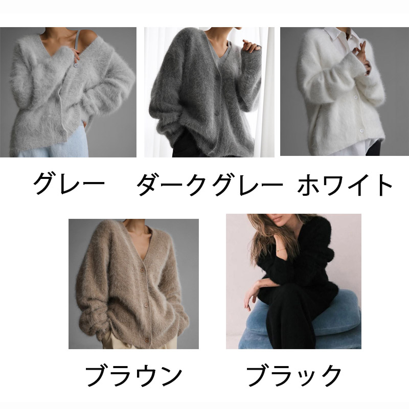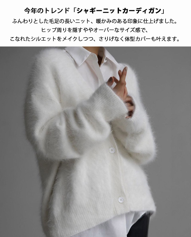 ニットカーディガン シャギーニット レ レディースファッション 続々入荷中 グレー ダークグレー ホワイト ブラウン ブラック 新色追加:ピンク