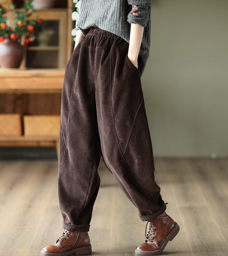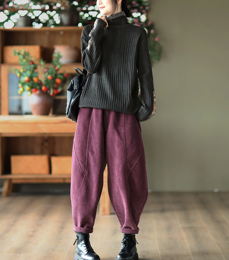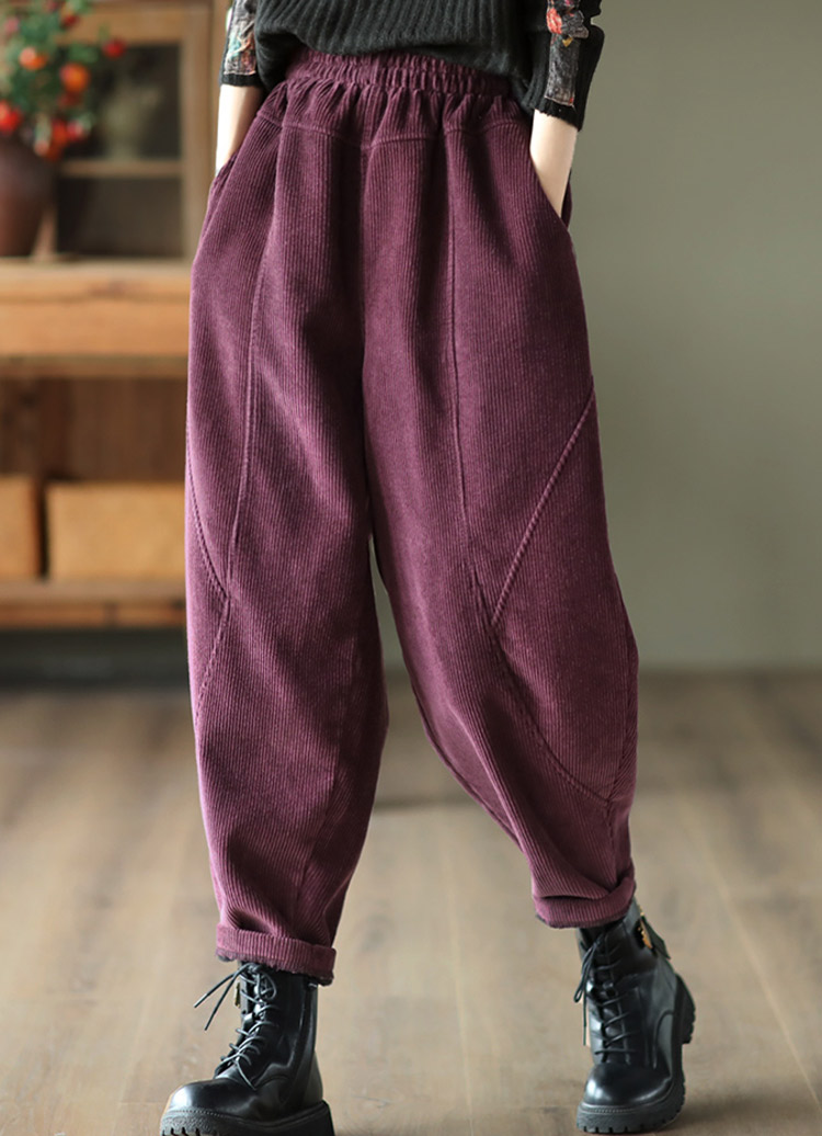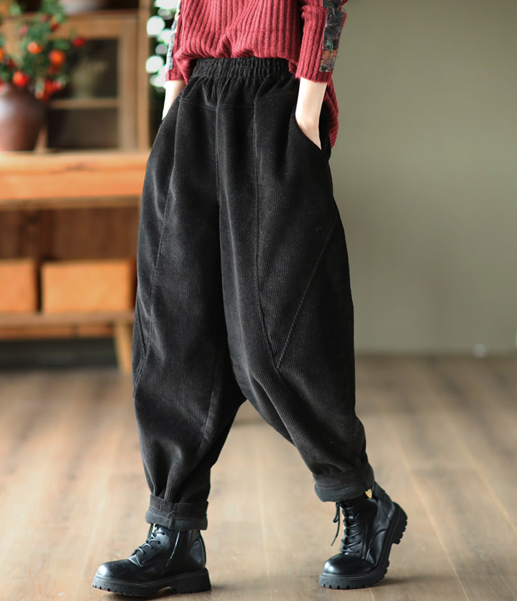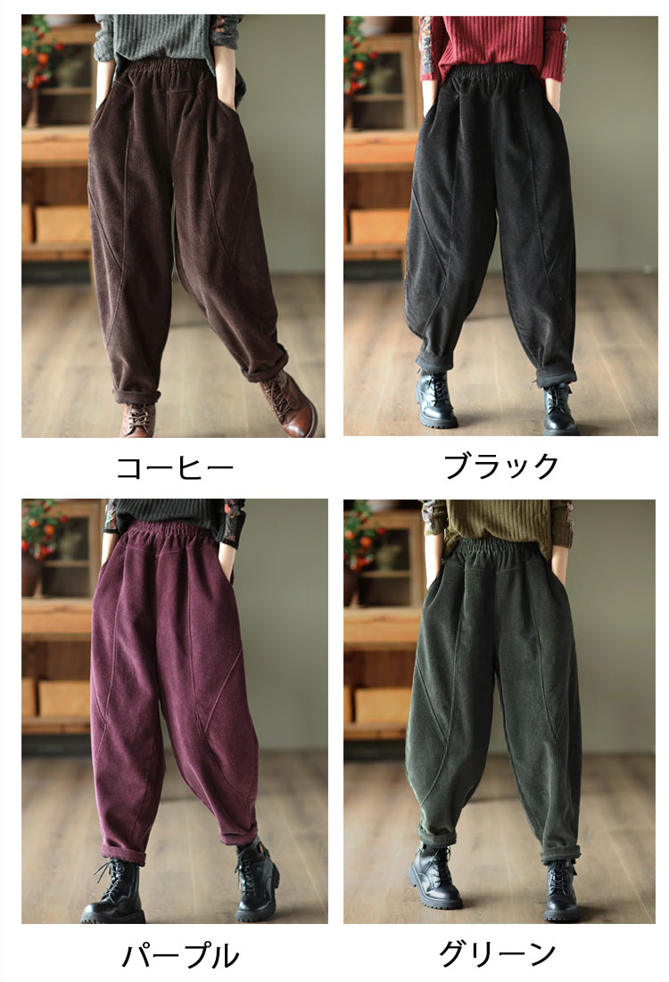 バルーンパンツ コーデュロイ レディー ボトムス パンツ 超目玉商品 裏起毛なし 裏起毛付き コーヒー ブラック パープル グリーン