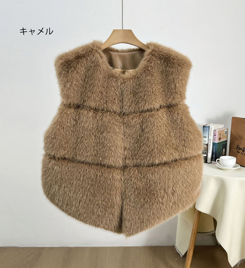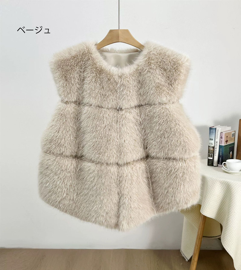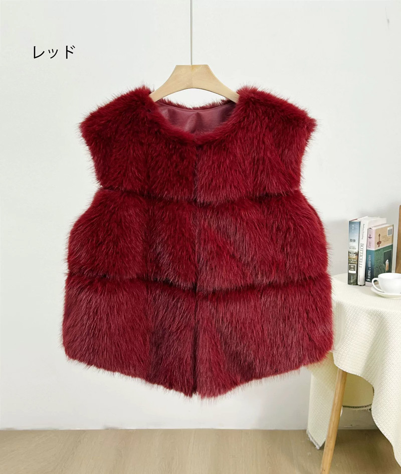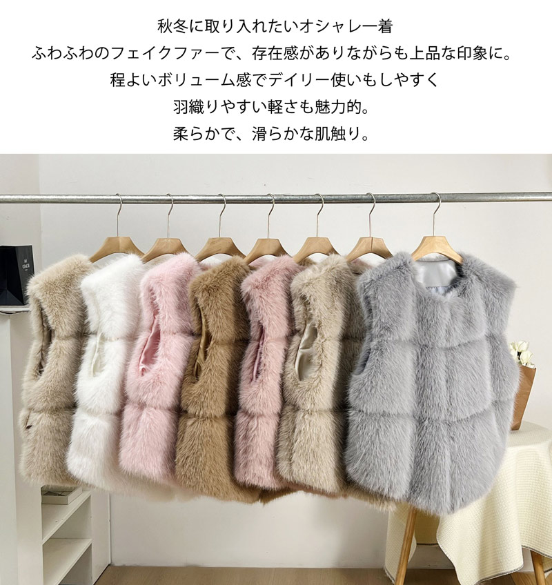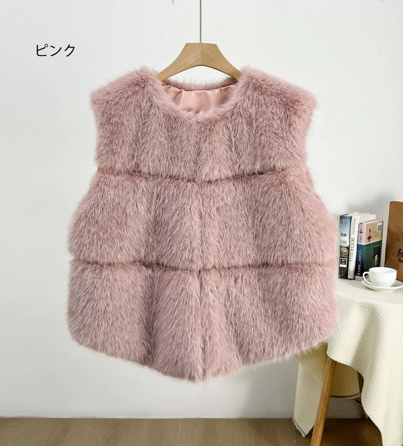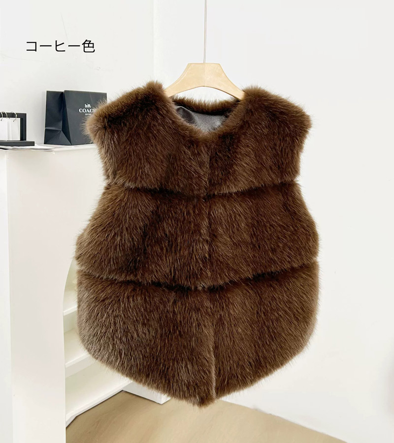 ファーベスト ベスト フェイクファー トップス ベスト 早い者勝ち ホワイト ブラック キャメル ピンク ベージュ グリーン レッド コーヒー色 グレー