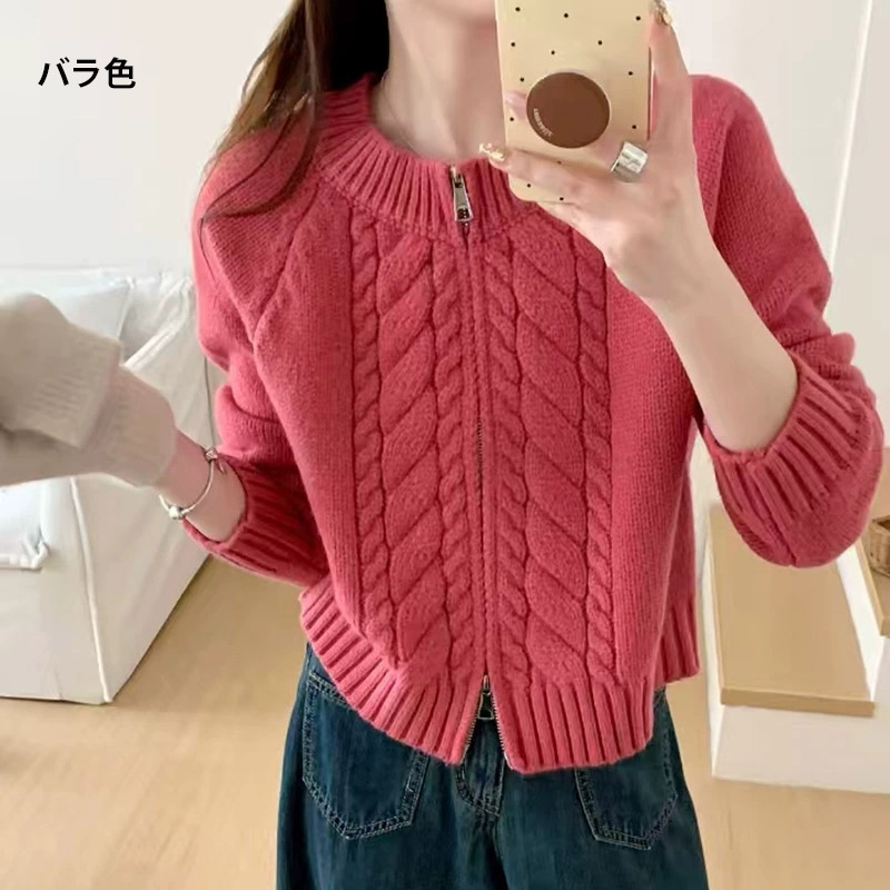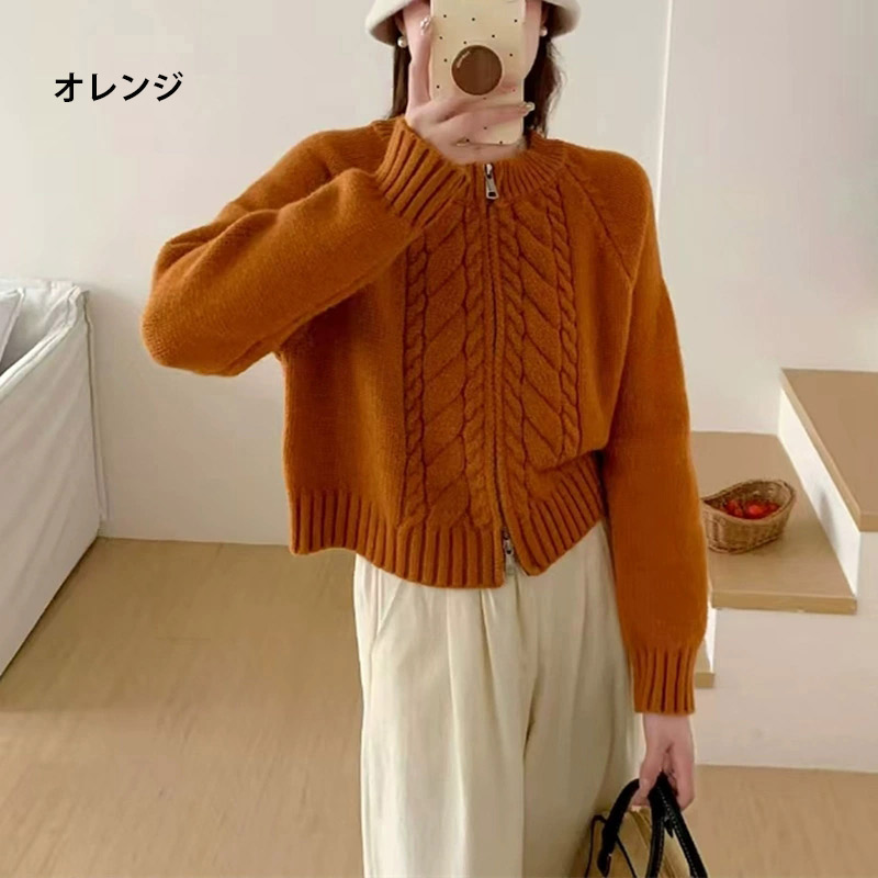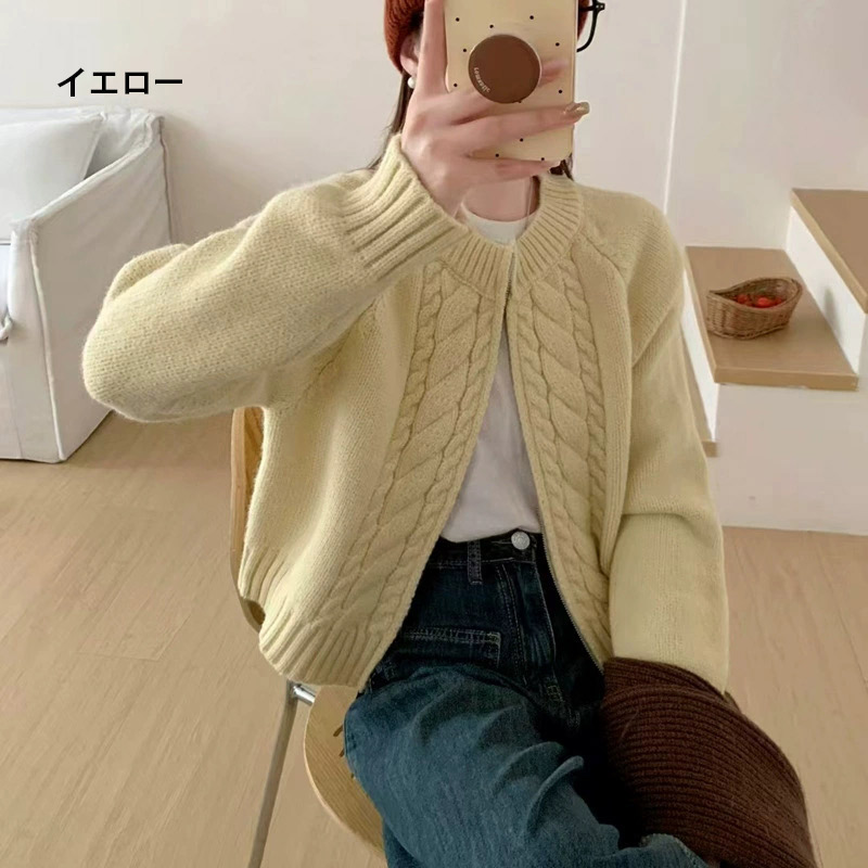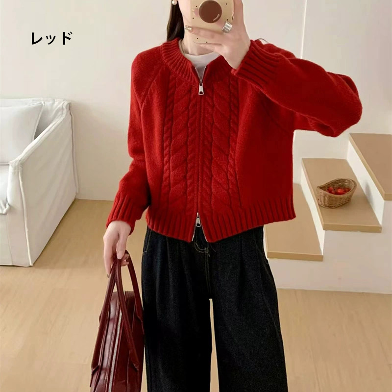 カーディガン レディース 長袖 ケーブ レディースファッション 続々入荷中 ダークグレー オフホワイト レッド グリーン オレンジ イエロー ブルー バラ色