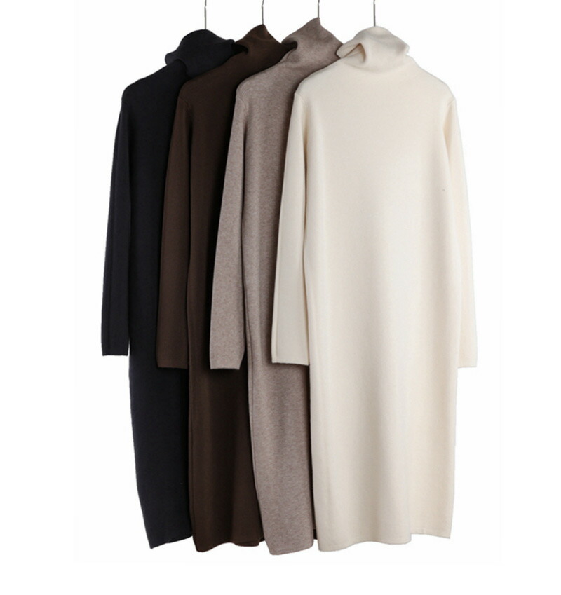 ニットワンピース ハイネック レディー ワンピース 続々登場 杏色 キャメル コーヒー 炭黒 ブラック