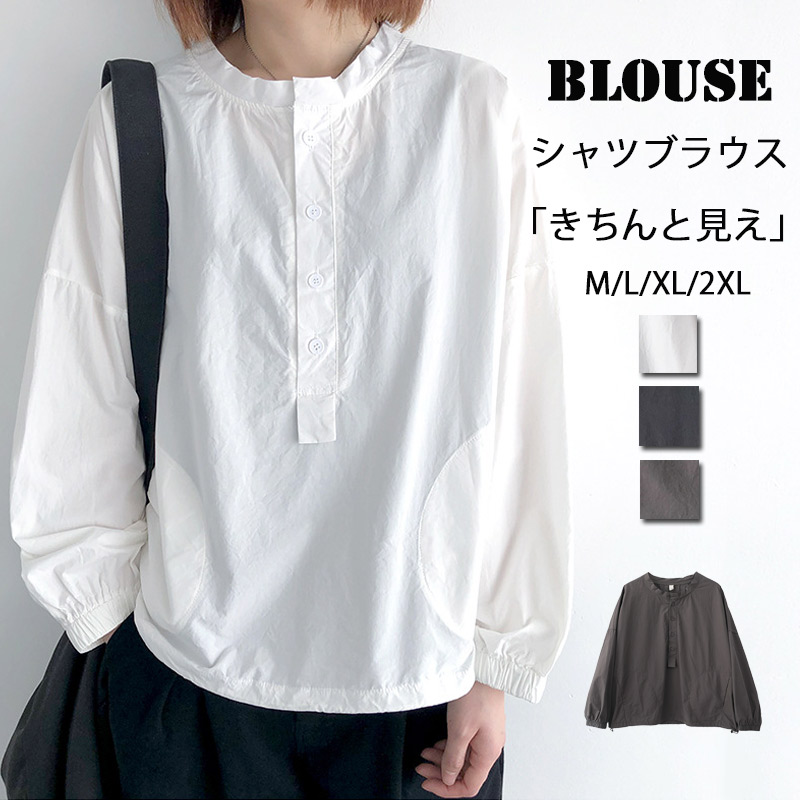 長袖ブラウス シャツブラウス レディー レディースファッション 続々登場 ホワイト グレー ブラック M L XL 2XL