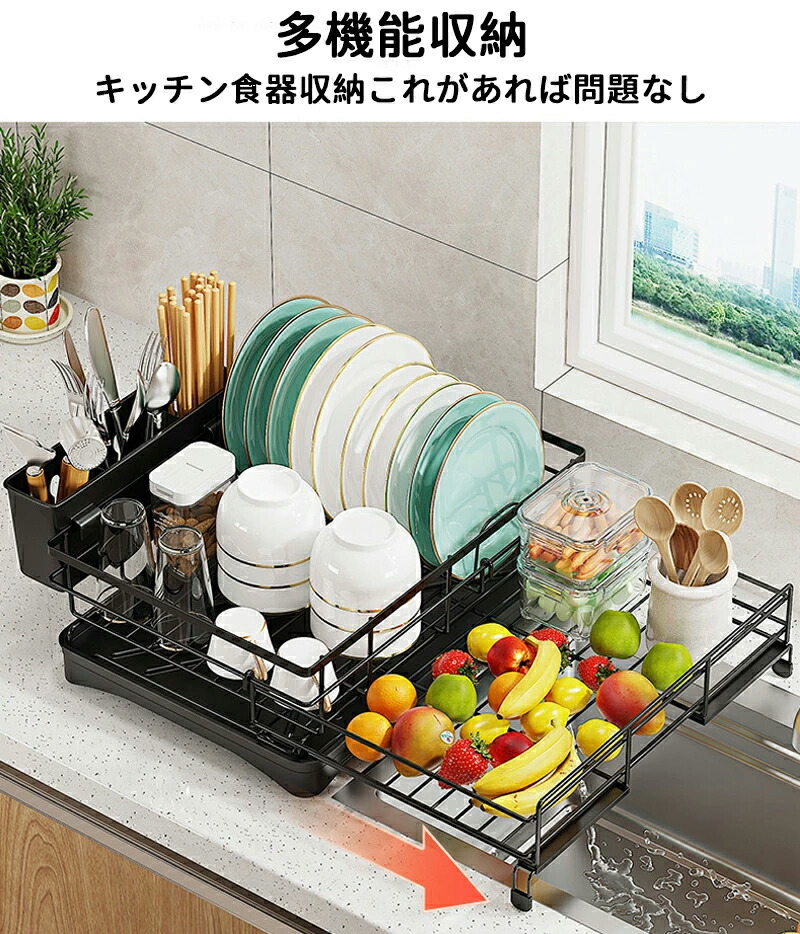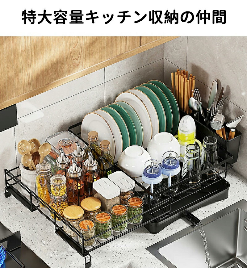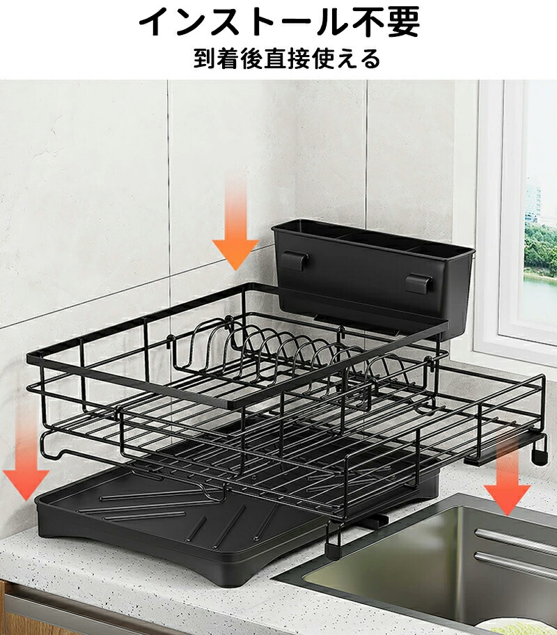 水切りラック 360°排水自動排水ステ キッチン用品 食器 調理器具 新登場! ブラック ホワイト