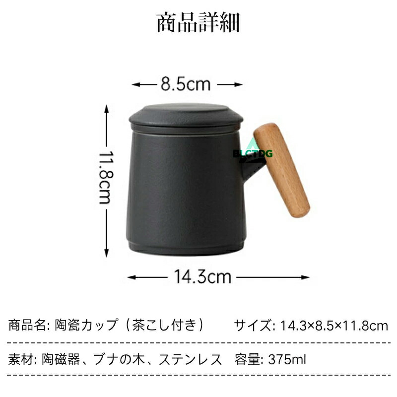 商品名:茶こし・フタ付き陶磁器マグカップ