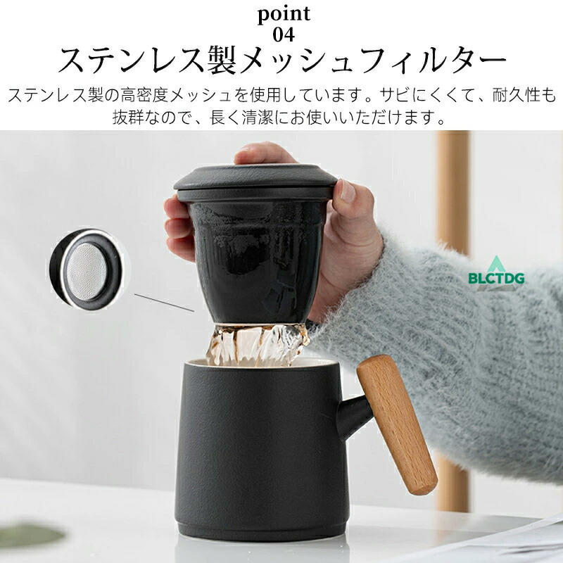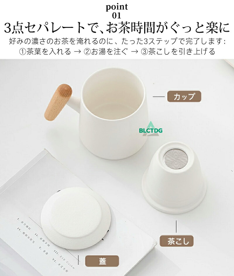 マグカップ 茶こし付き フタ付き 蓋付き 陶磁器 食器 保温 ほこり防止 大容量 便利 使いやすい 紅茶 日本茶 ハーブティー オフィス 自宅 おしゃれ ギフト プレゼント シンプル