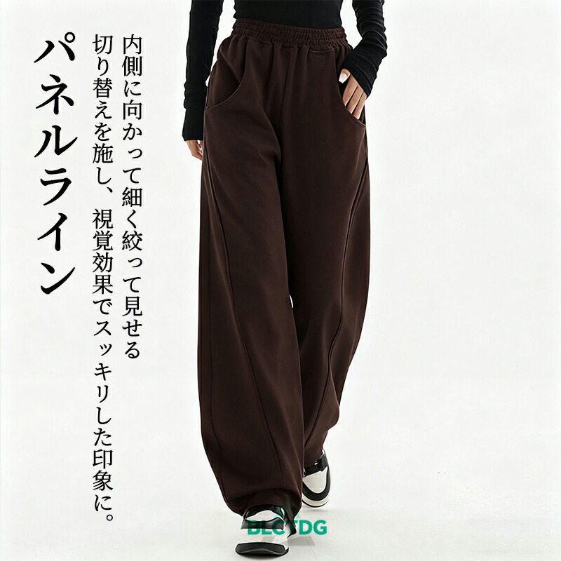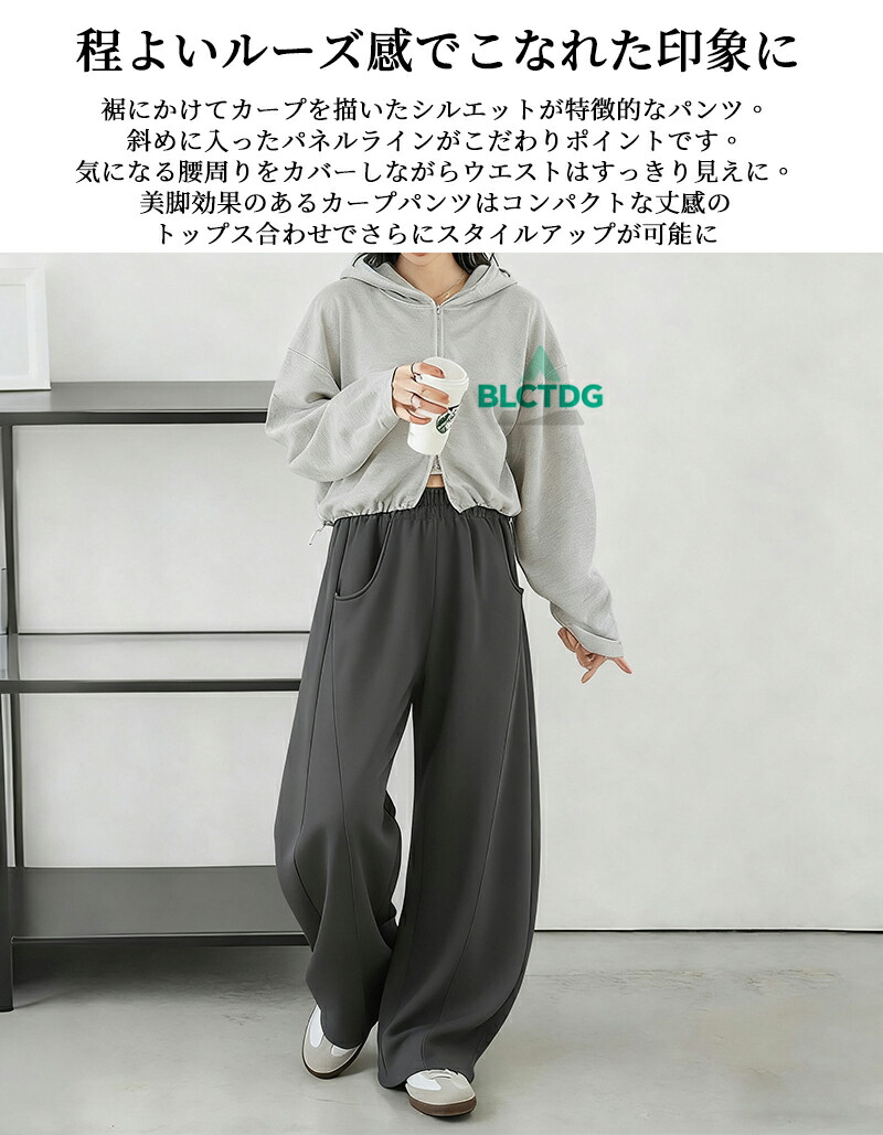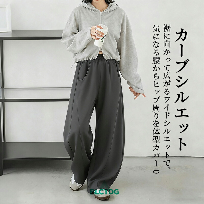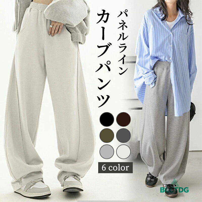カーブパンツ スウェットパンツ ワイド ボトムス パンツ 新登場! ライトグレー ブラック グリーン ブラウン ホワイト グレー M L
