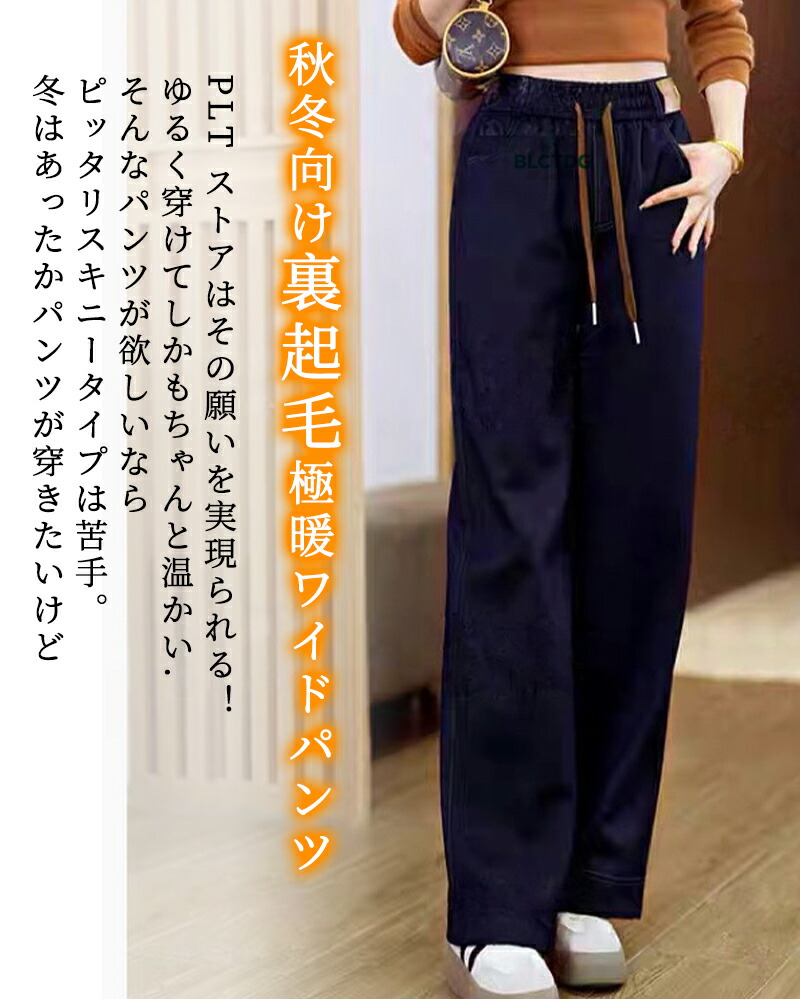 裏起毛 パンツ ワイドパンツ 裏ボアパ レディースファッション 新登場! ネイビー ブルー ブラック 2XL 3XL 4XL 5XL