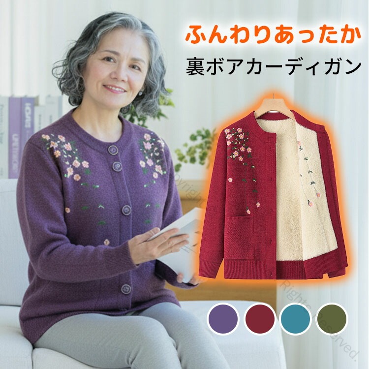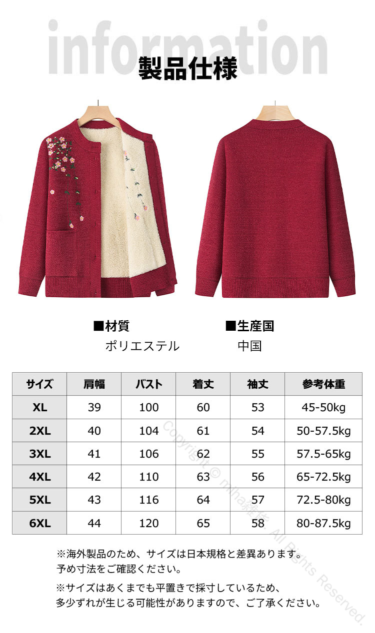 裏起毛シニアファッションニットカーディ レディースファッション 新作 レッド パープル ブルー グリーン XL 2XL 3XL 4XL 5XL 6XL