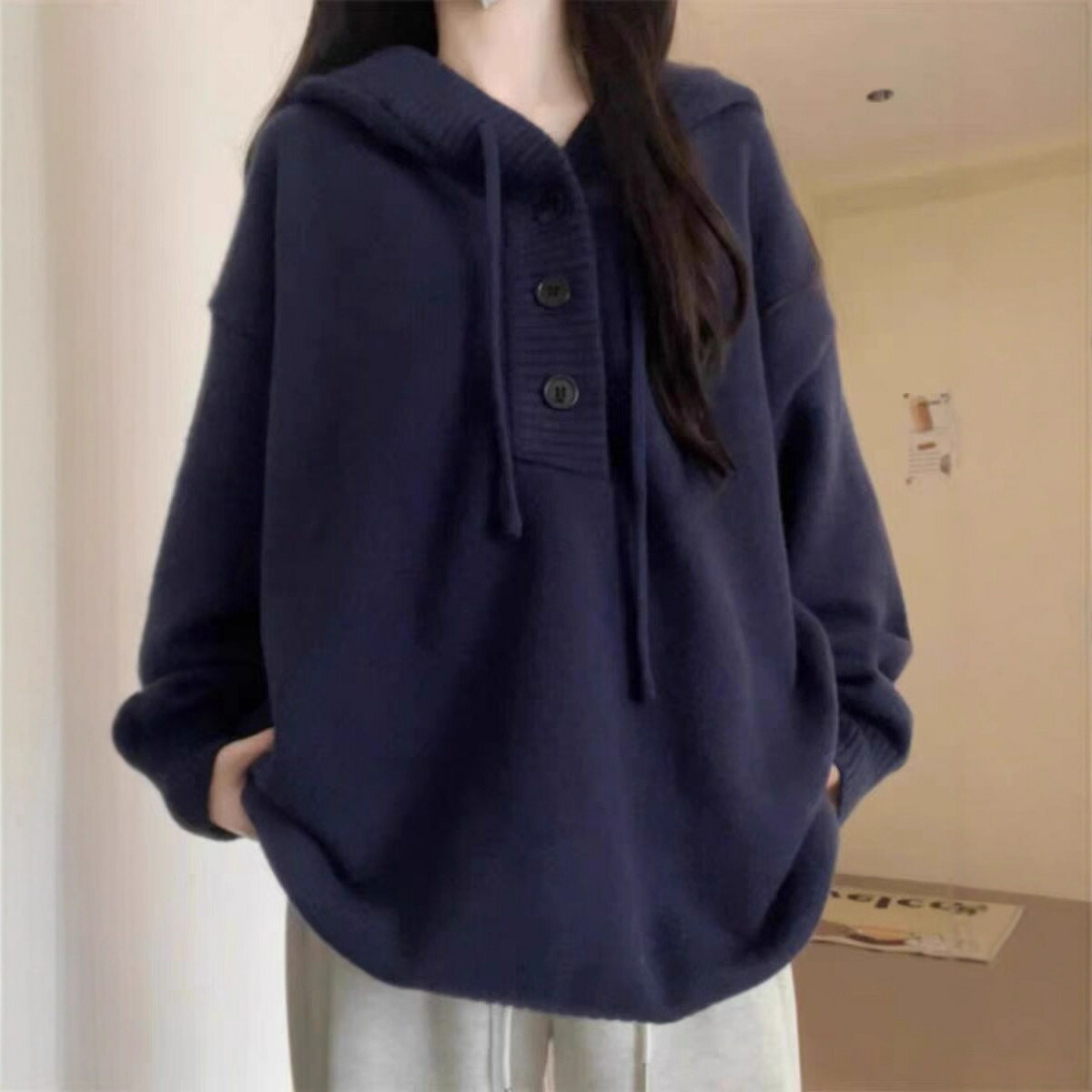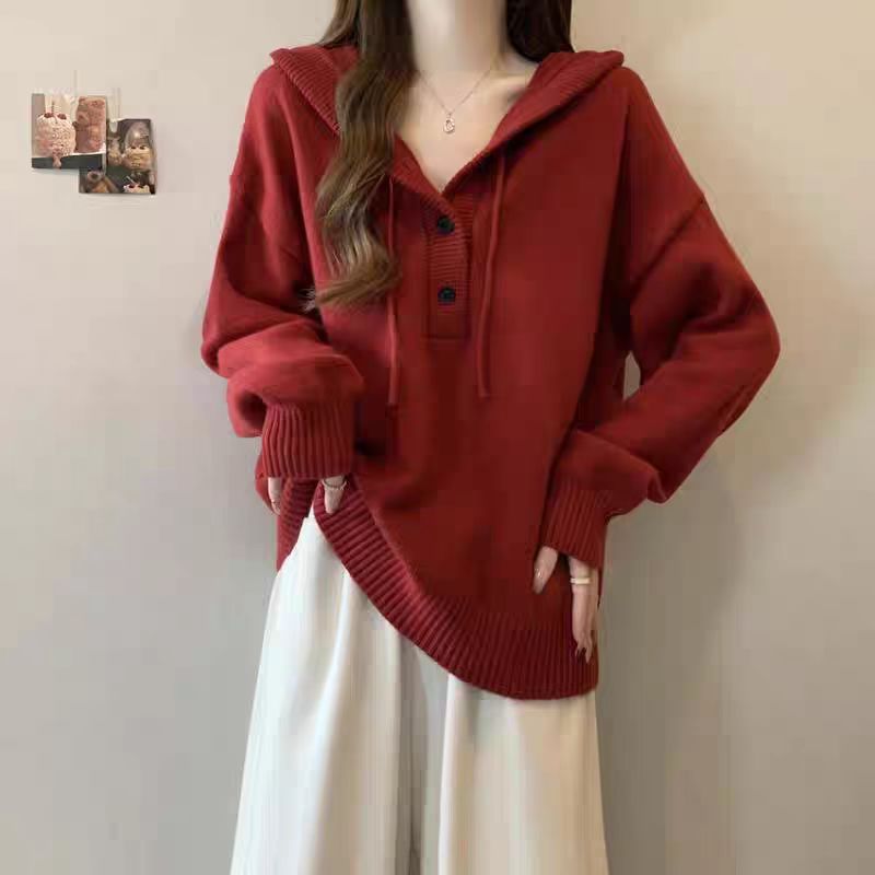 セーター 優しい フード付きニットセー レディースファッション 続々登場 グレー レッド ネイビー
