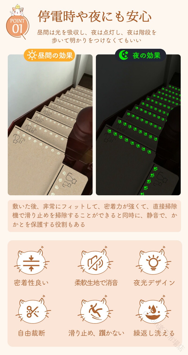 洗濯可能 階段マット 折り曲げ付き 吸 蓄光ベージュ 蓄光ブラウン 蓄光カーキ 5枚 7枚 15枚 18枚 20枚