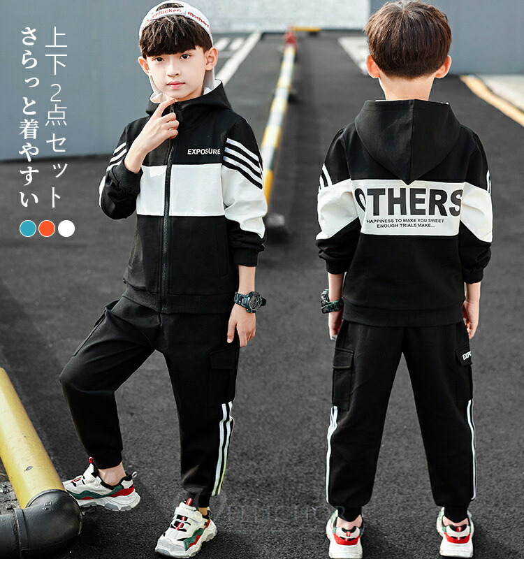 ジャージ セットアップ 子供 上下 男 キッズ スーツ カジュアルセットアップ カジュアルパンツセット 早い者勝ち ホワイト オレンジ ブルー 120cm 130cm 140cm 150cm 160cm 170cm