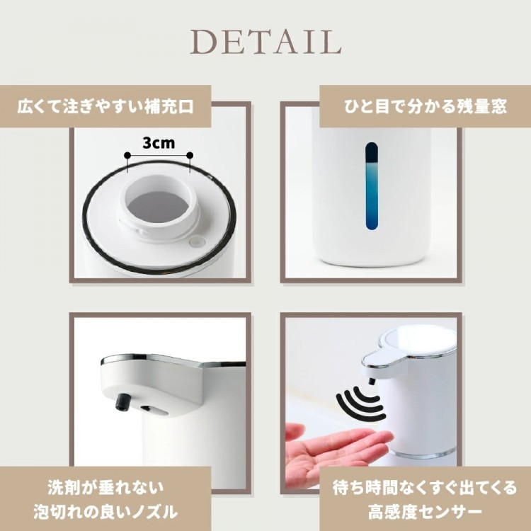 ソープディスペンサー 自動 泡 液体 日用品雑貨 文房具 手芸 特集 ホワイト ブラック 泡タイプ用 液体タイプ用