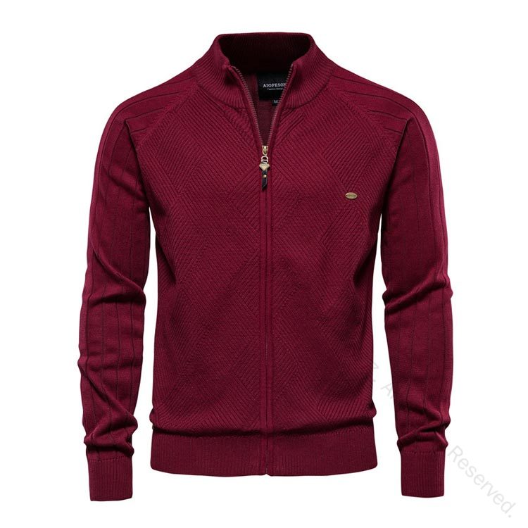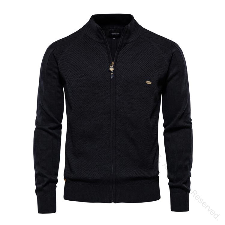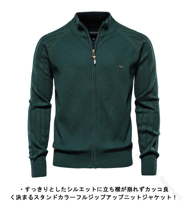 フルジップ コットン 綿 ニットジャケ ゴルフ ウェア メンズウェア セーター 新作 モカ ダークグリーン ネイビー ブラック グレー M L XL 2XL 3XL