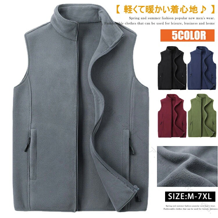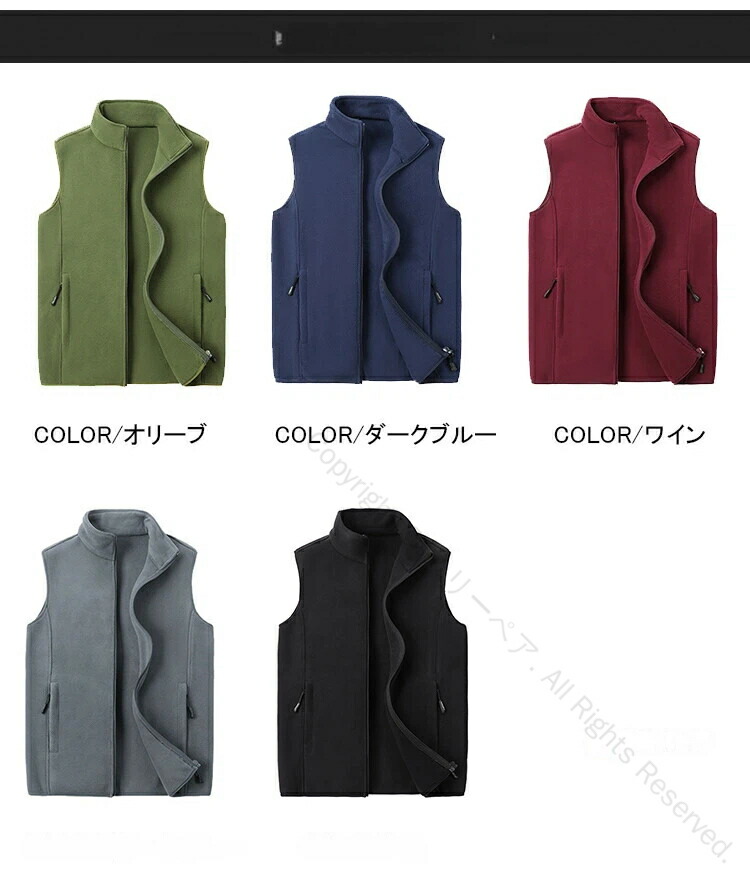フリース ベスト 起毛 暖かい スタン メンズファッション 早い者勝ち M L XL 2XL 3XL 4XL 5XL 6XL 7XL オリーブ 黒 ダークブルー ワイン ダークグレー