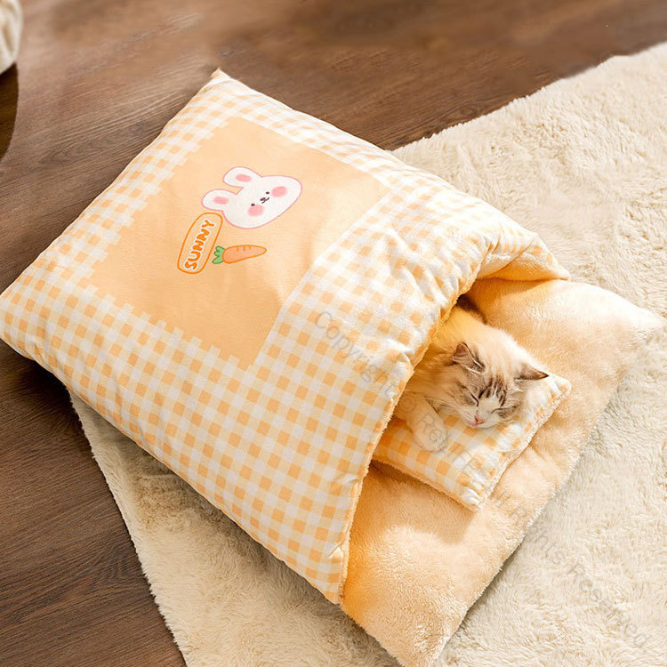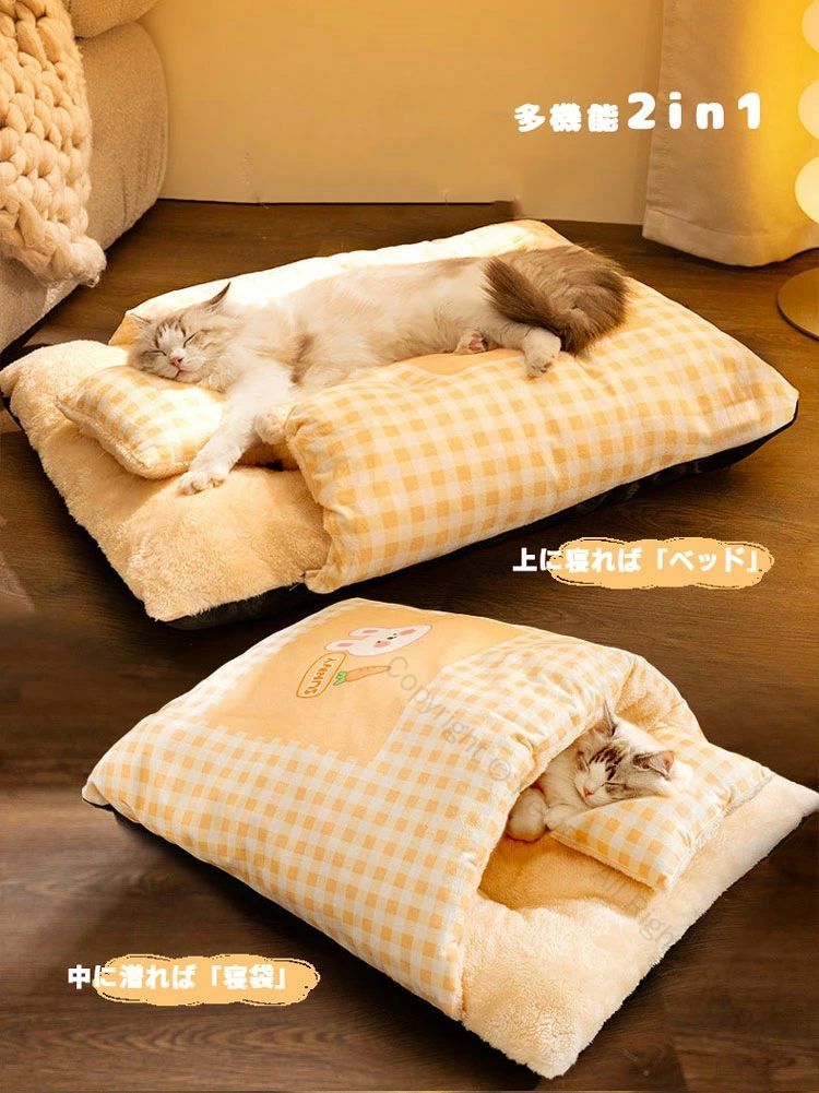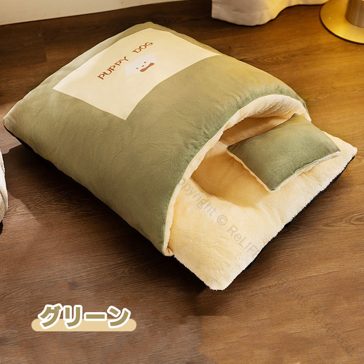 猫用寝袋 猫ベッド 冬用 枕付き 猫布 ペット ペットグッズ 特集 イエロー グリーン S:45*35CM M:55*40CM L:65*50CM