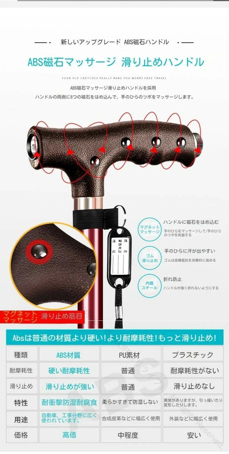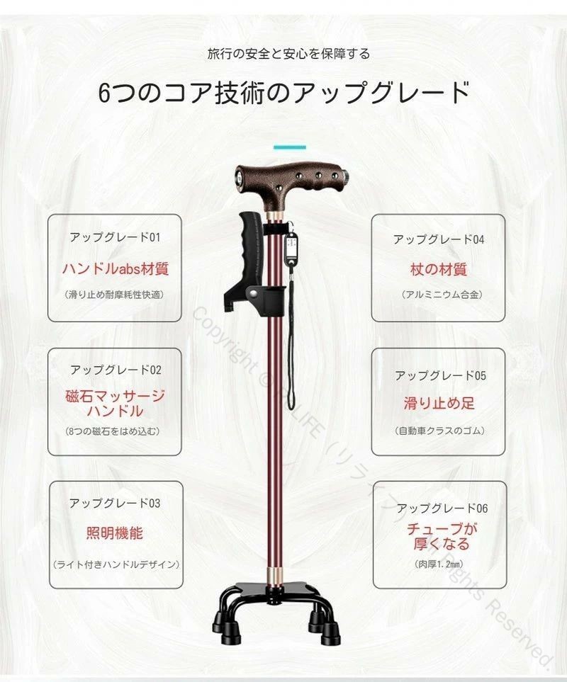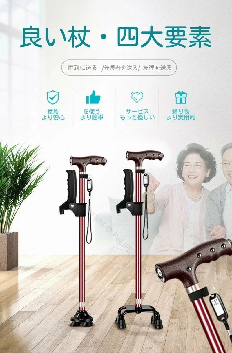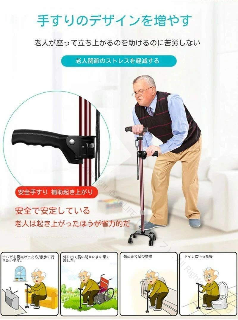 つえ 杖 軽量 自立式 4点杖 介護 プラック ワインレッド A セット B セット C セット