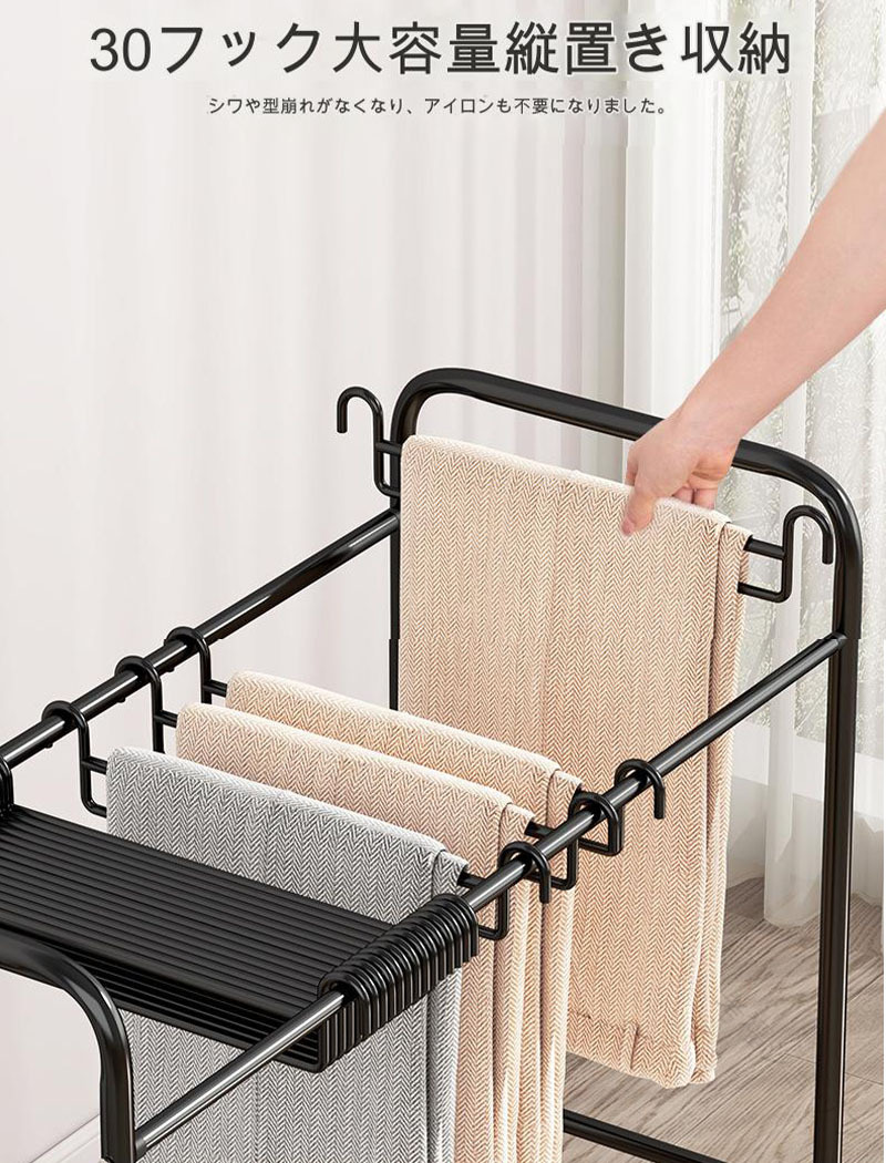 スラックスハンガー 大容量 20本掛け ブラック ベージュ 60幅+フック20個 75幅+フック24個 75幅+フック30個