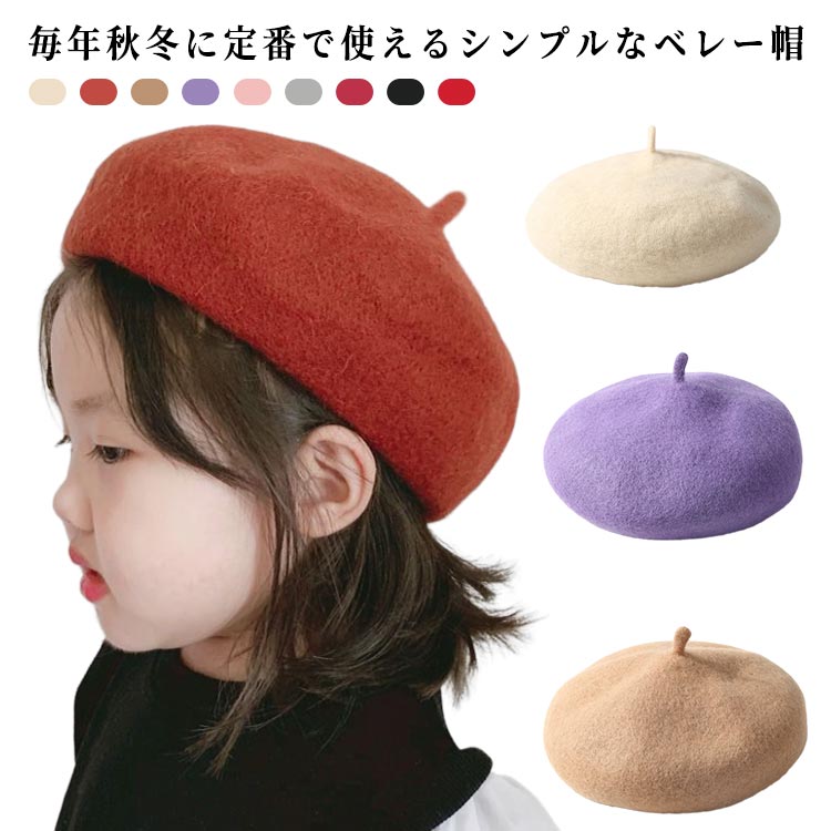 秋冬 舞台 あったか 大人 かわいい キッズ 帽子 ベレー帽 豊富 アイボリー オレンジ キャメル パープル ピンク グレー ワインレッド ブラック レッド 子供/頭囲48-54cm 大人/頭囲56-60cm