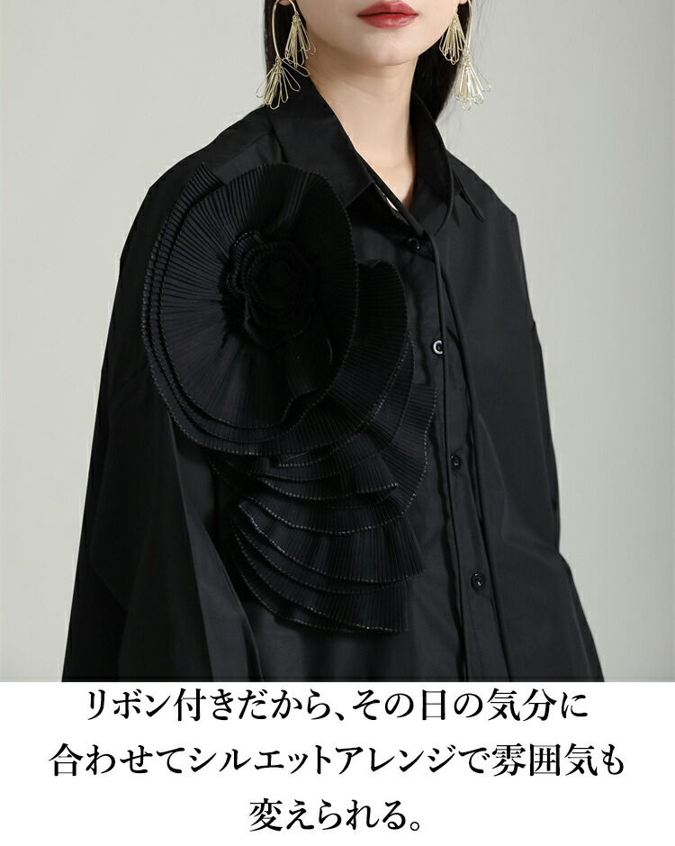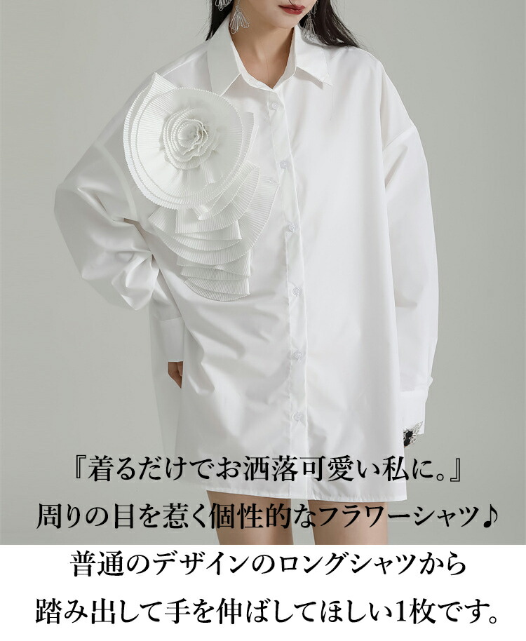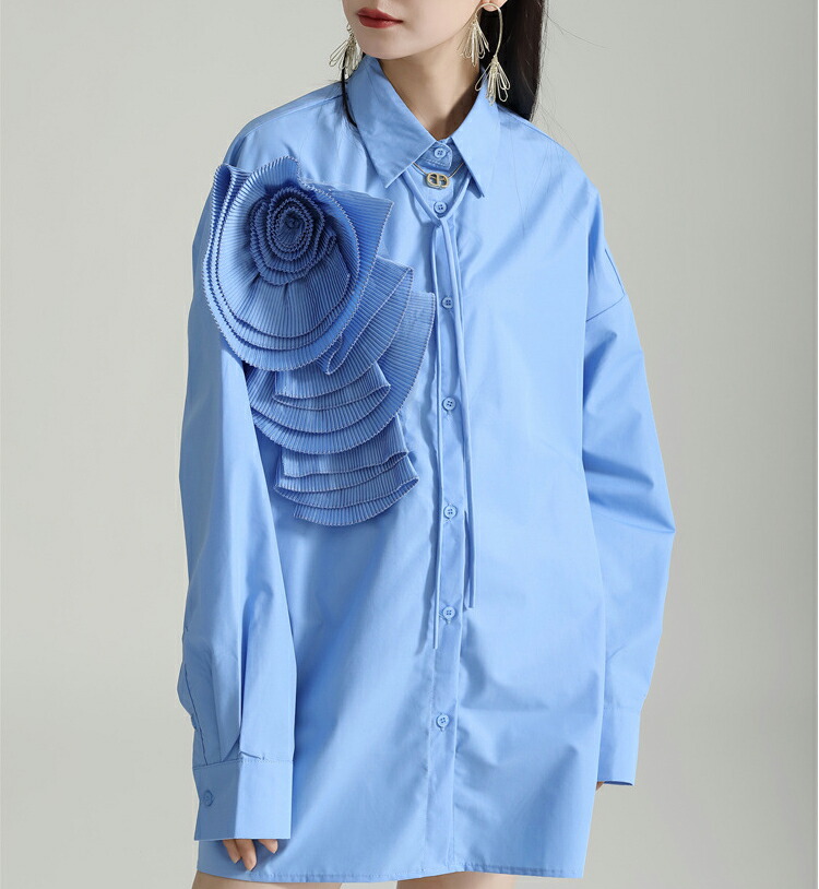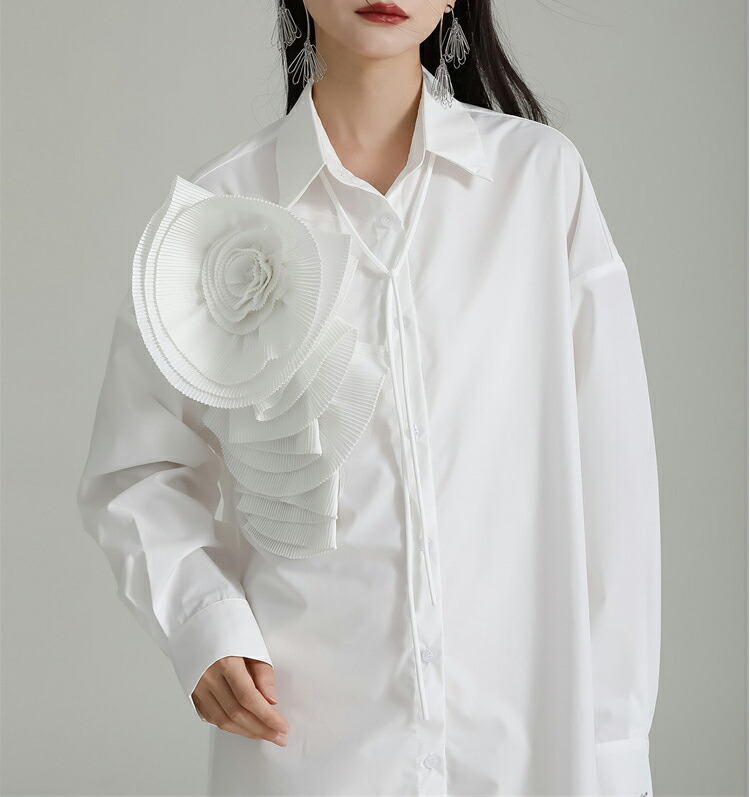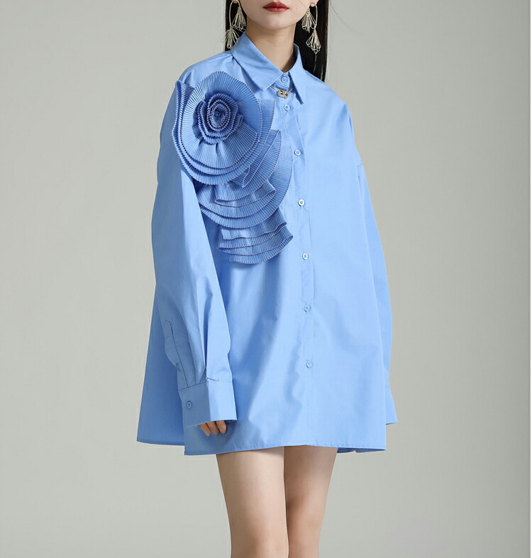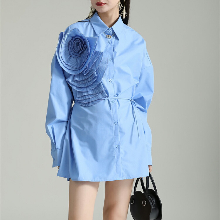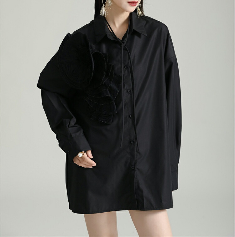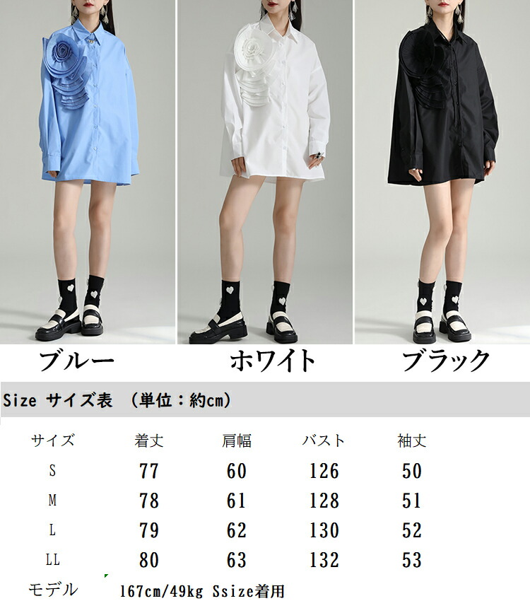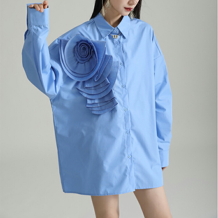 フラワーデザインシャツ シャツ レディ トップス シャツ ブラウス 超目玉商品 ブラック ホワイト ブルー S M L LL