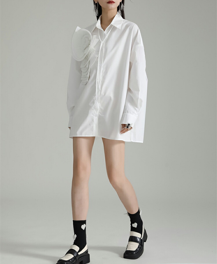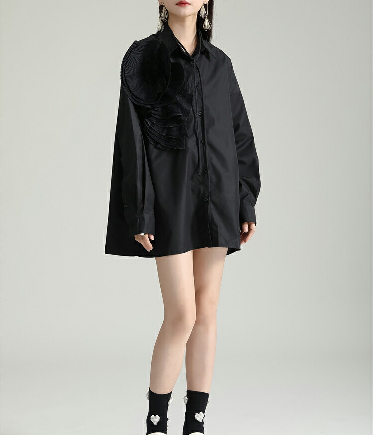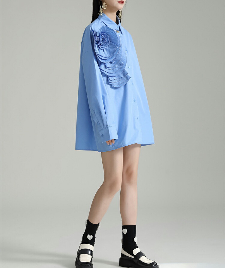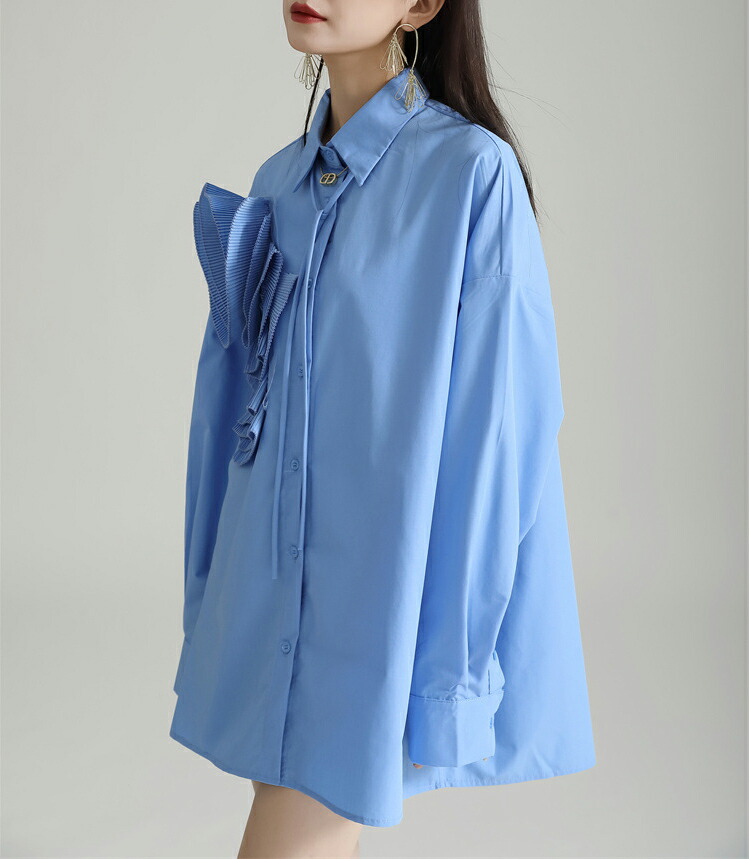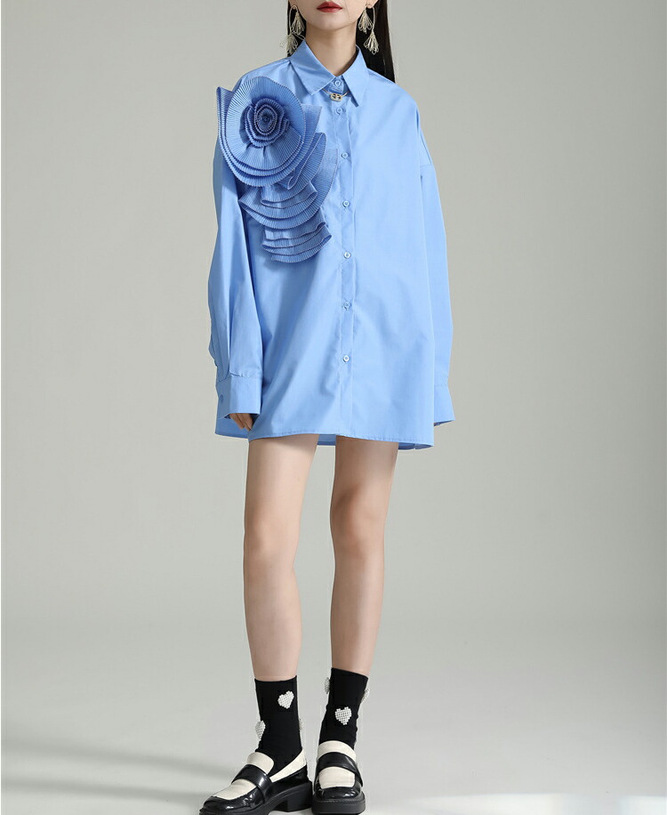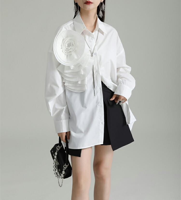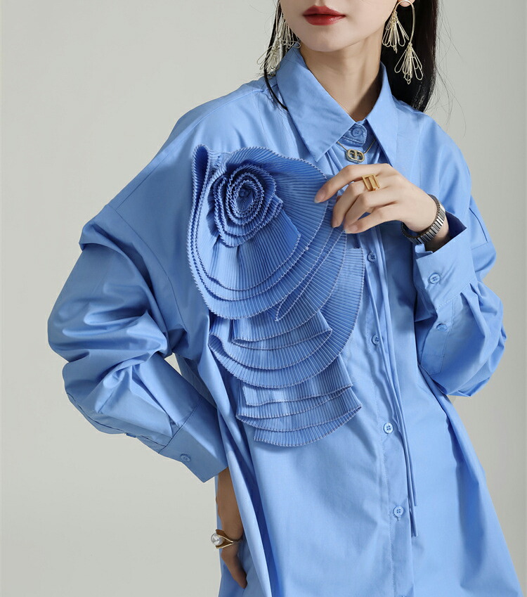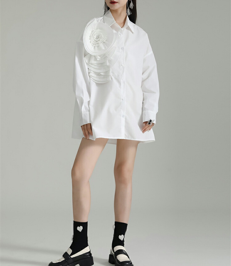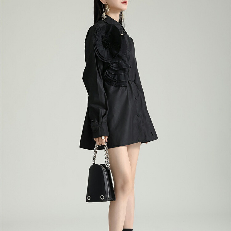 フラワーデザインシャツ シャツ レディ トップス シャツ ブラウス 超目玉商品 ブラック ホワイト ブルー S M L LL