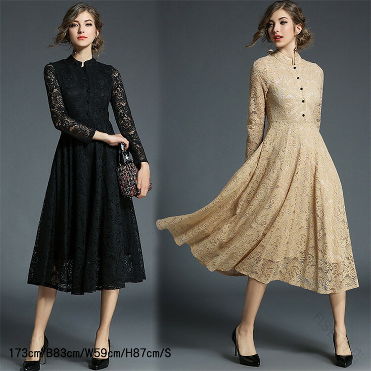 パーティードレス ロングワンピース 総レース シースルー 長袖 ロング丈 結婚式 披露宴 二次会 お呼ばれ カーキ 黒 ブラック 20代 30代 レディース フォーマル 春夏秋冬 40代