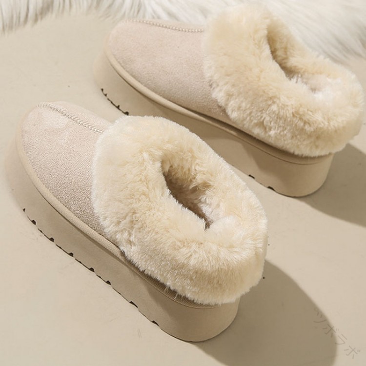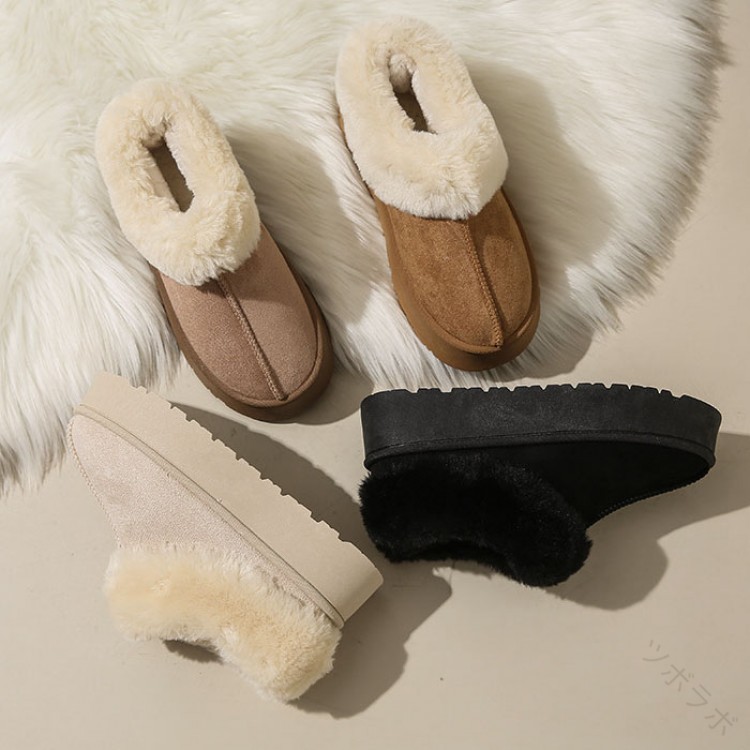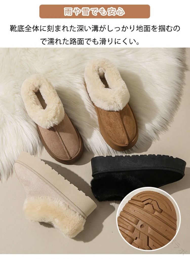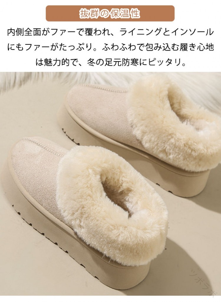 ムートンブーツ レディース ムートンシューズ 厚底 4cmヒール スリッポンタイプ ルームシューズ フェイクファー もこもこ 厚底靴 裏ボア 裏起毛 歩きやすい 防寒対策 厚手仕様 冬用カジ あったか