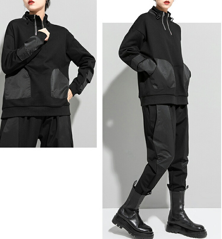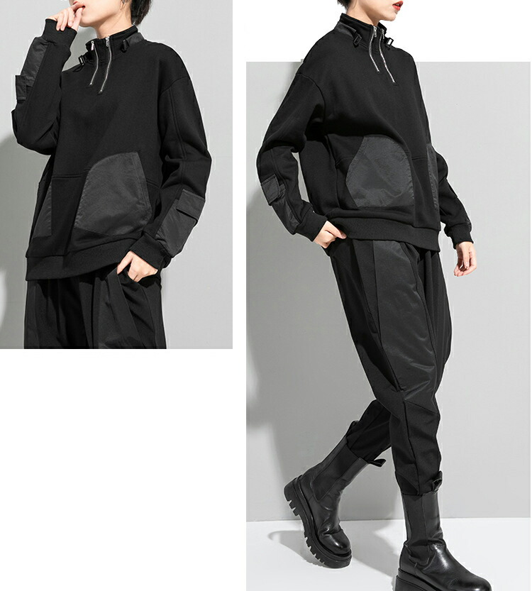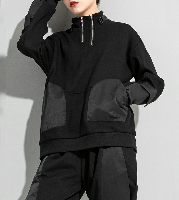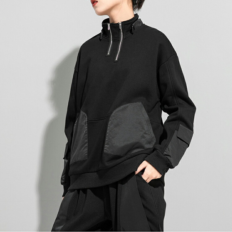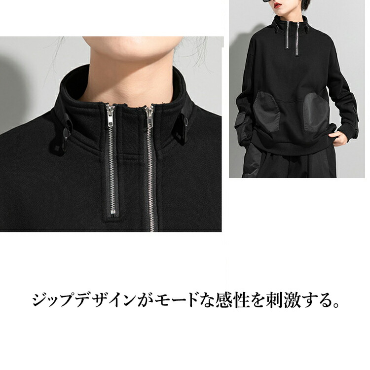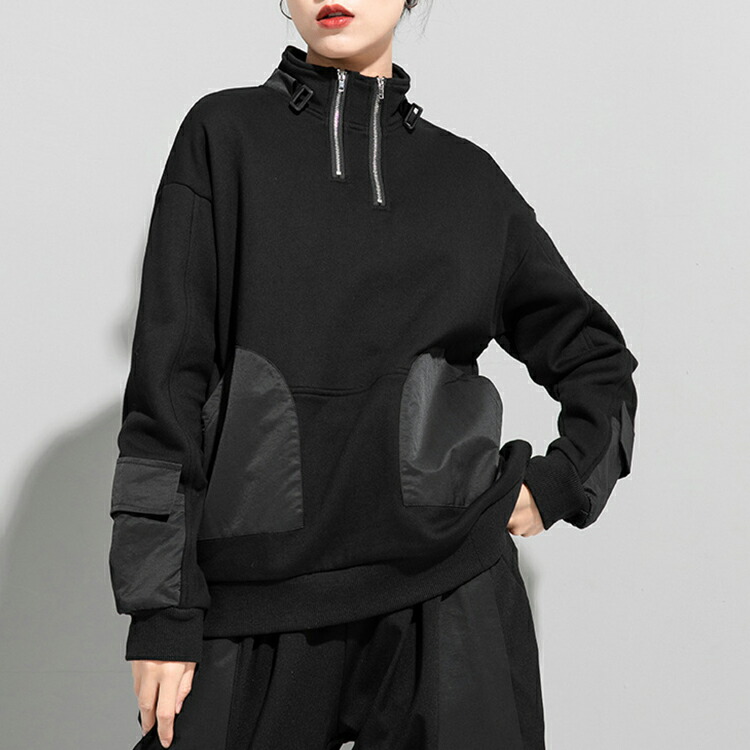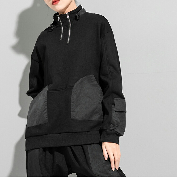 変形ジップアッププルオーバー トレーナ レディースファッション 通販 M L 2L(XL)