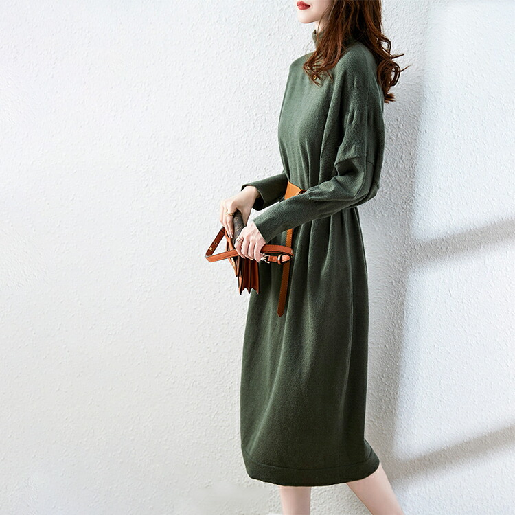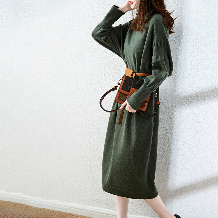 ニットワンピース 長袖 春 冬 レディ ワンピース 新登場! S M L 2L