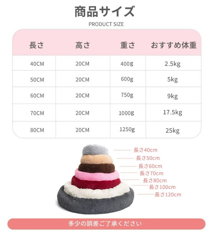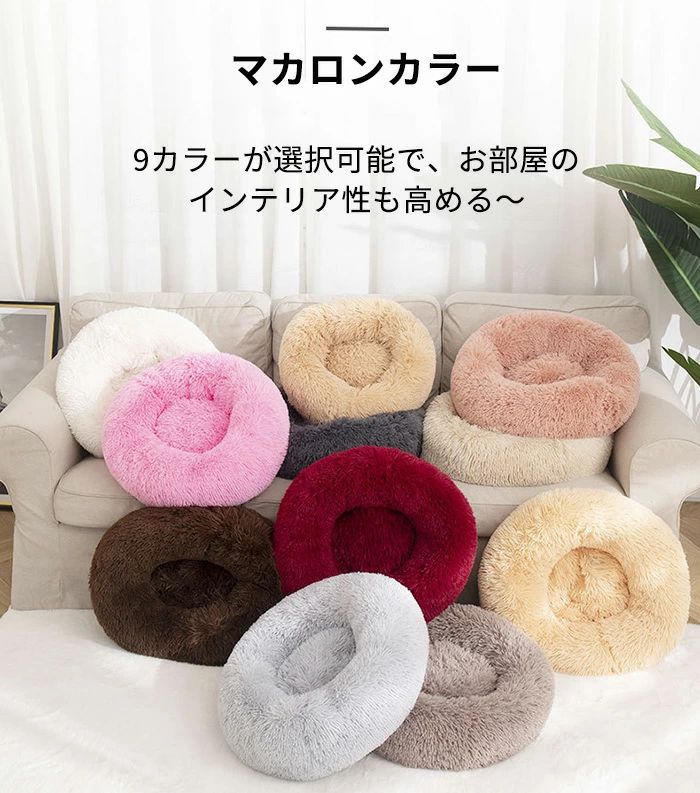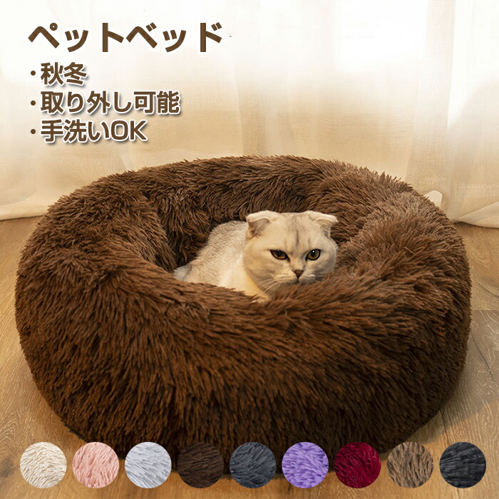 ペットベッド ふわふわ 洗える かわい ペット ペットグッズ 特集 ベージュ ピンク ライトグレー コーヒー色 ダークグレー ワインレッド パープル ブラック カーキ 直径40cm 直径50cm 直径60cm 直径70cm 直径80cm
