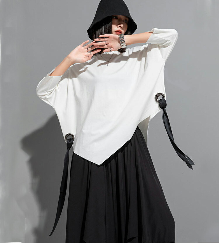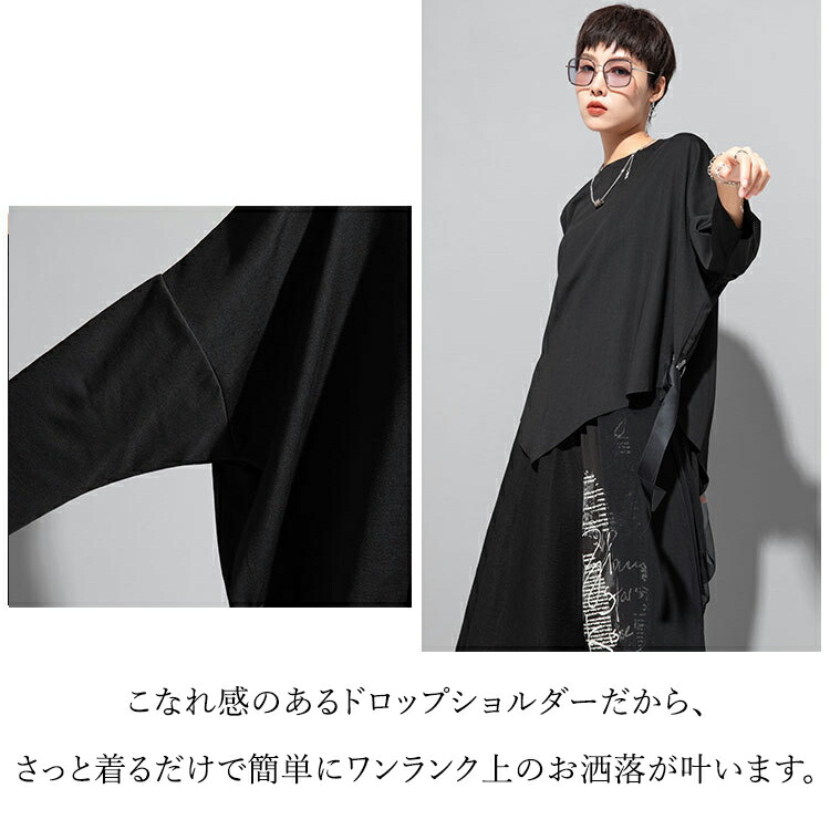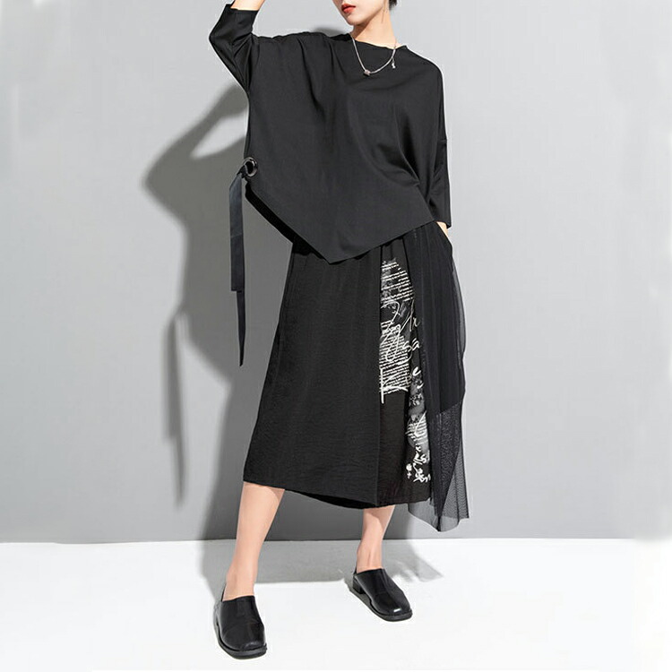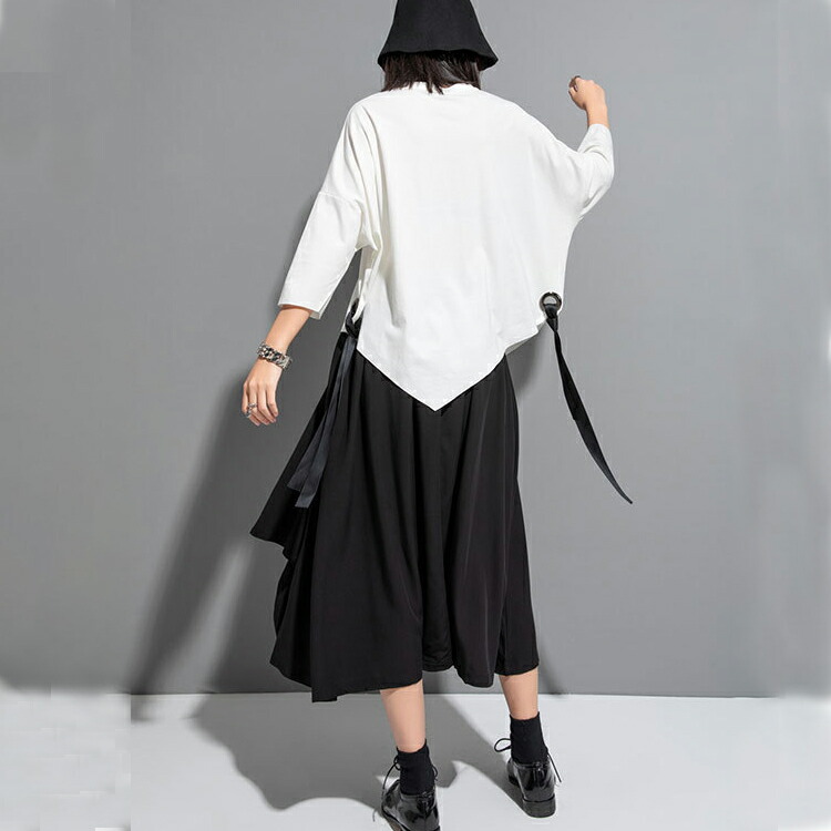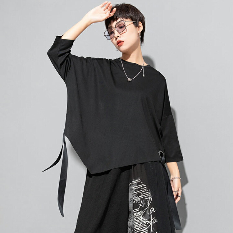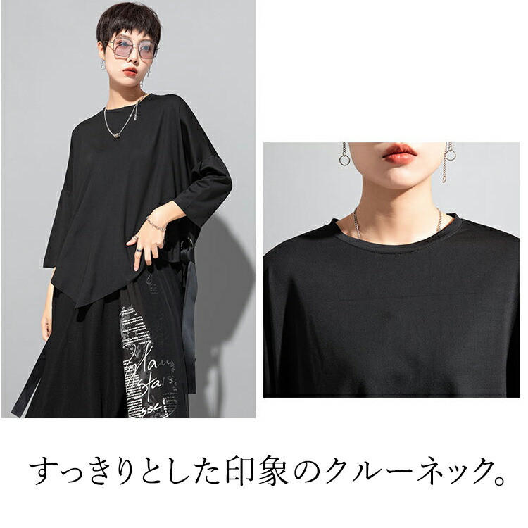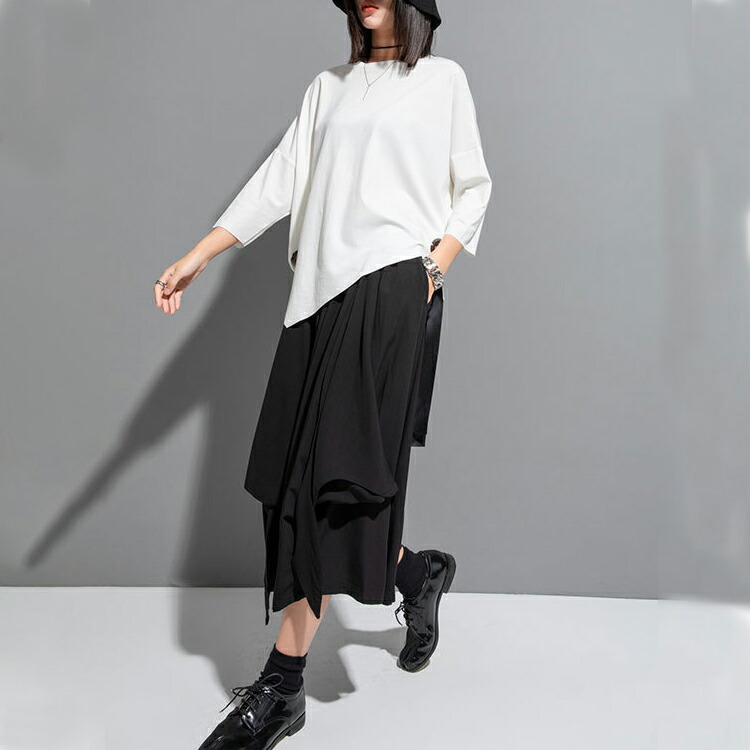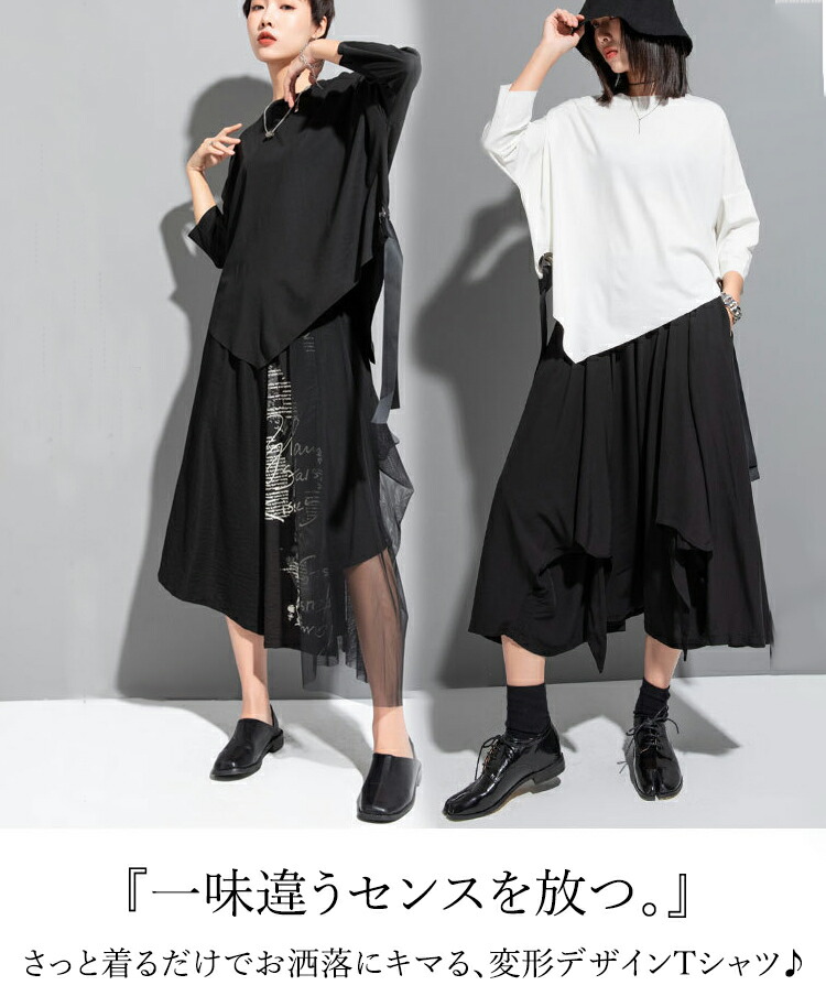 ヘムデザインTシャツ Tシャツ レディ レディースファッション 人気 ブラック ホワイト M L