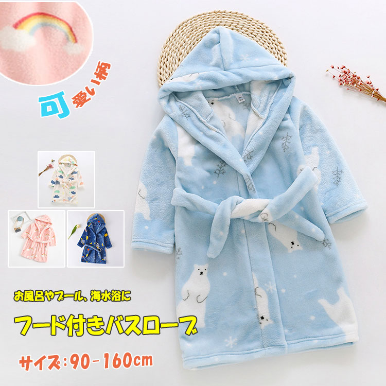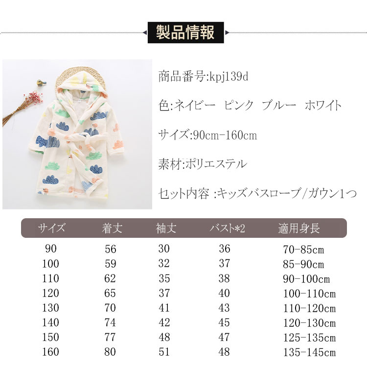 バスローブ キッズ フード付き 長袖 キッズ ベビー マタニティ 新登場! ネイビー ピンク ブルー ホワイト 90 100 110 120 130 140 150 160