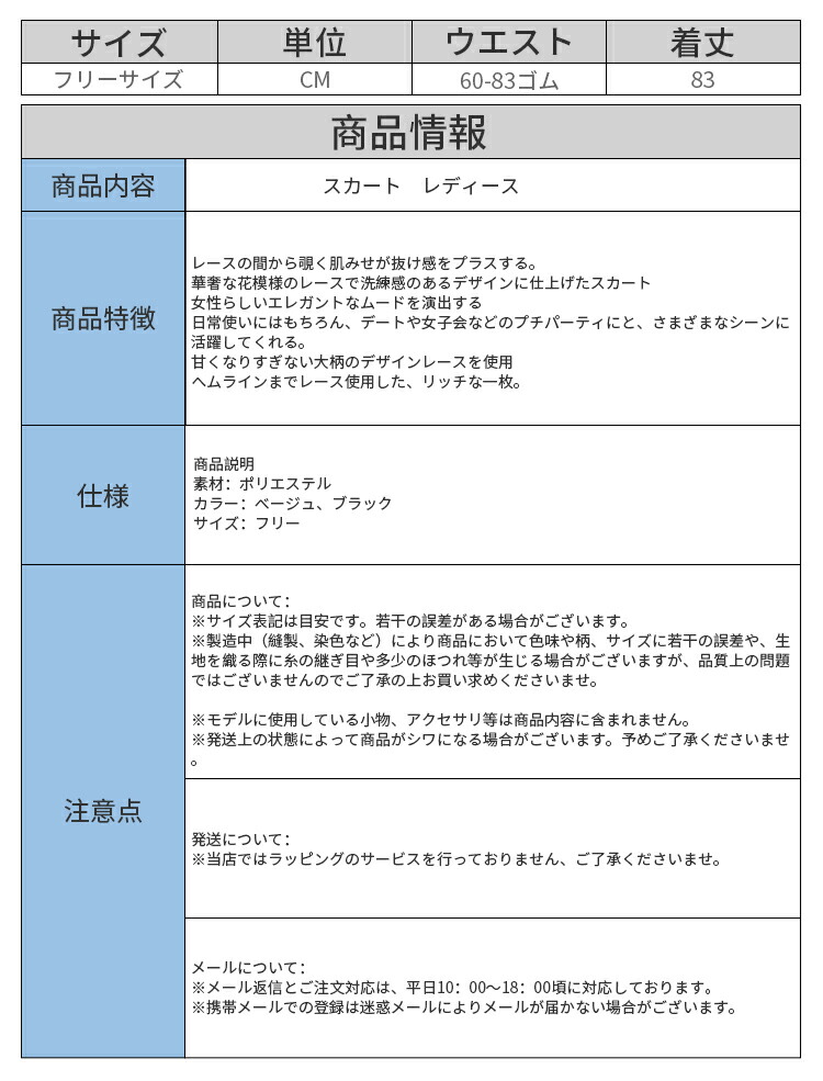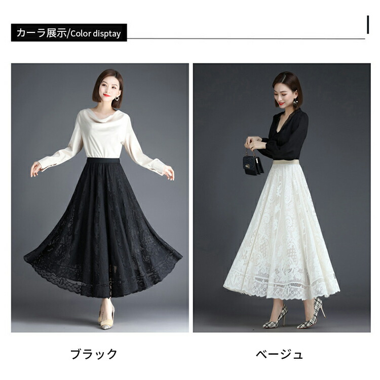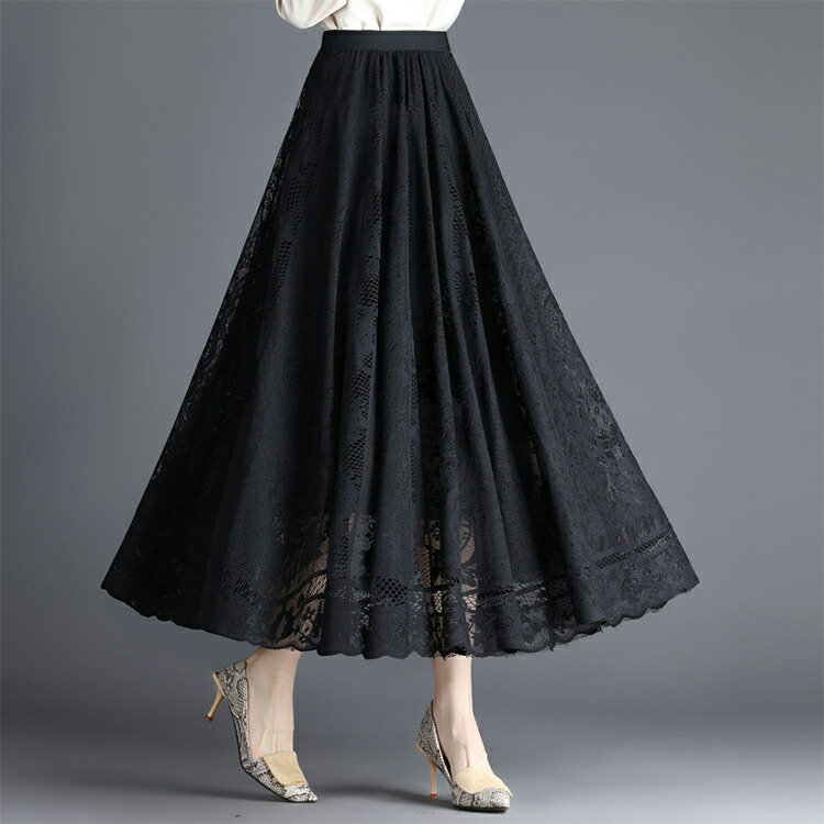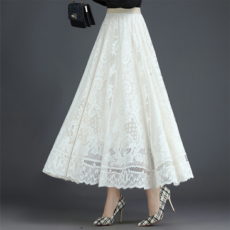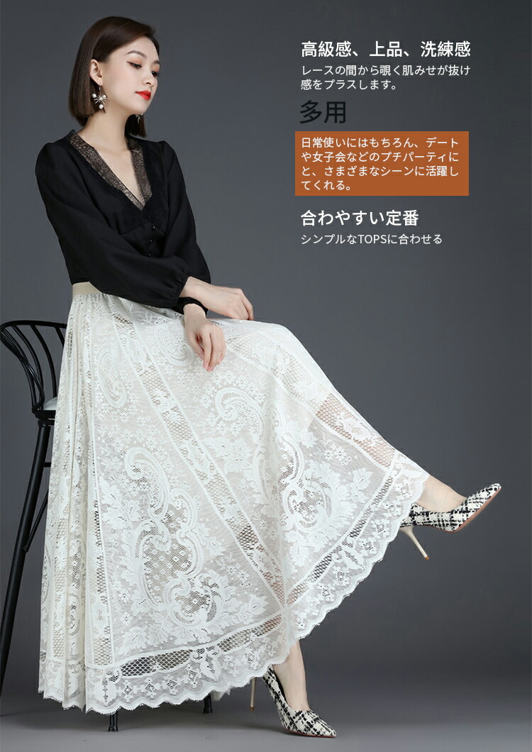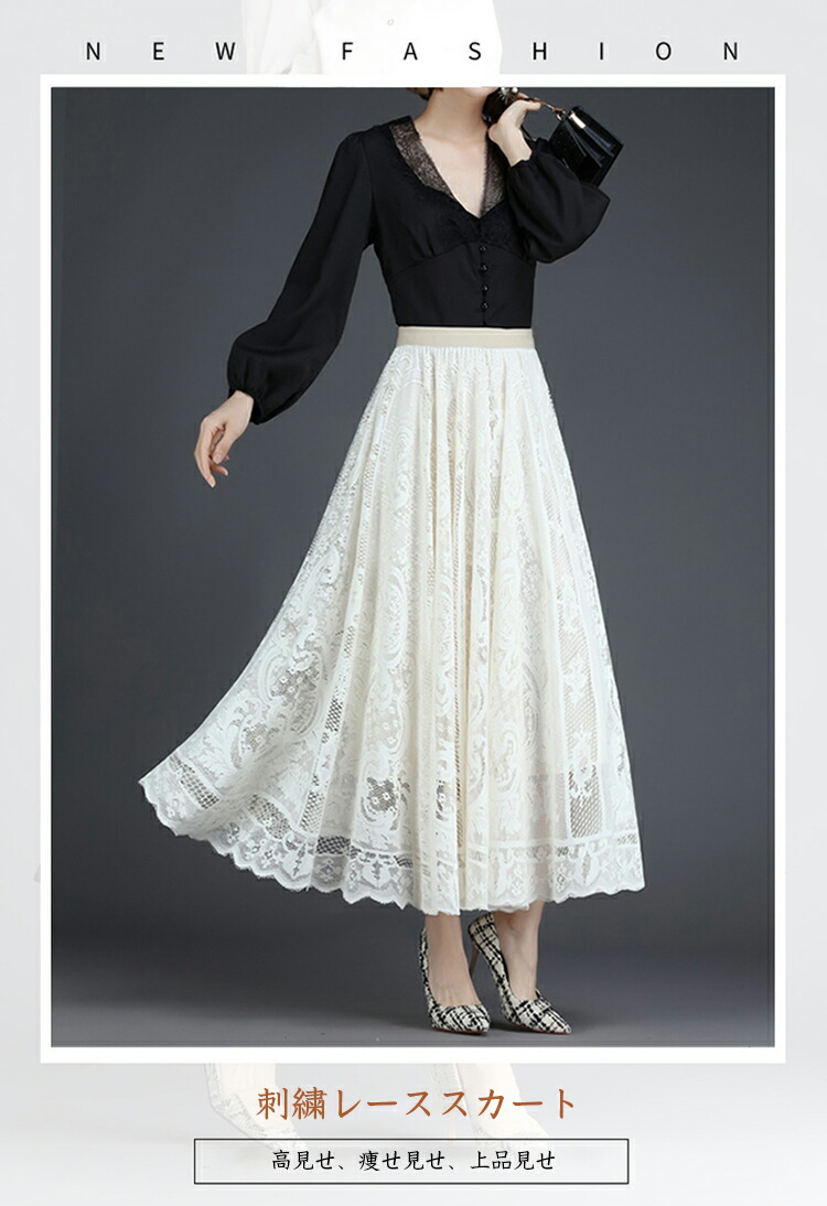 レーススカート レディース 夏 刺繍 ボトムス スカート 人気 ブラック ベージュ