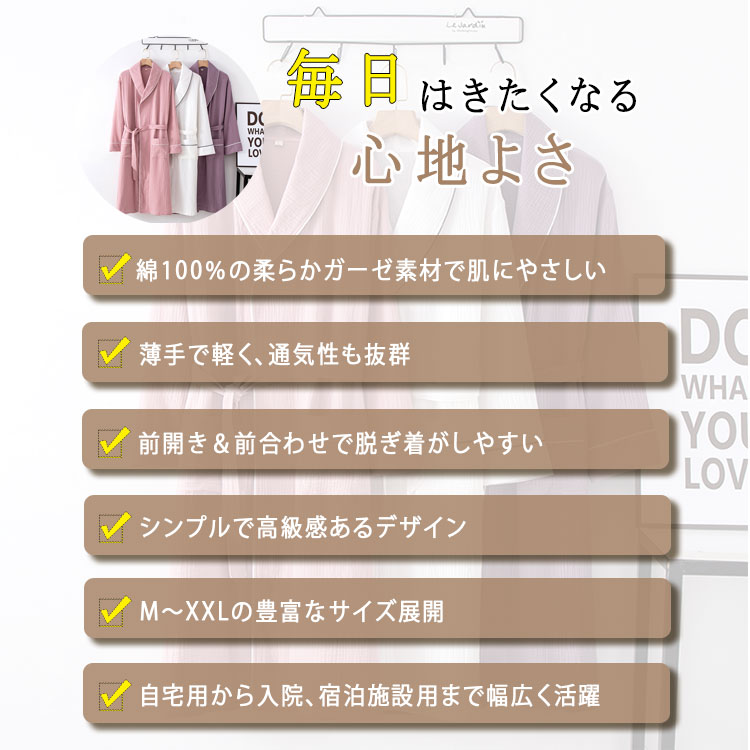 バスローブ ガウン ダブルガーゼ ルー レディース ナイトウェア ルームウェア ナイトガウン 新作 NO1 NO2 NO3 NO4 NO5 NO6 M L XL XXL