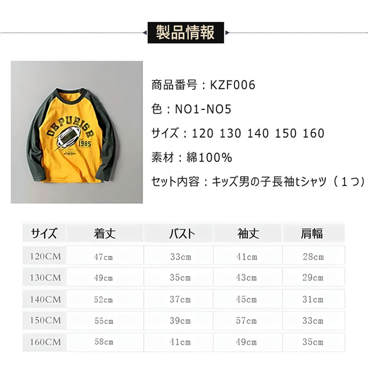 Tシャツ 長袖 キッズ 男の子 綿 コ キッズ トップス Tシャツ カットソー 新登場! NO1 NO2 NO3 NO4 NO5 120 130 140 150 160