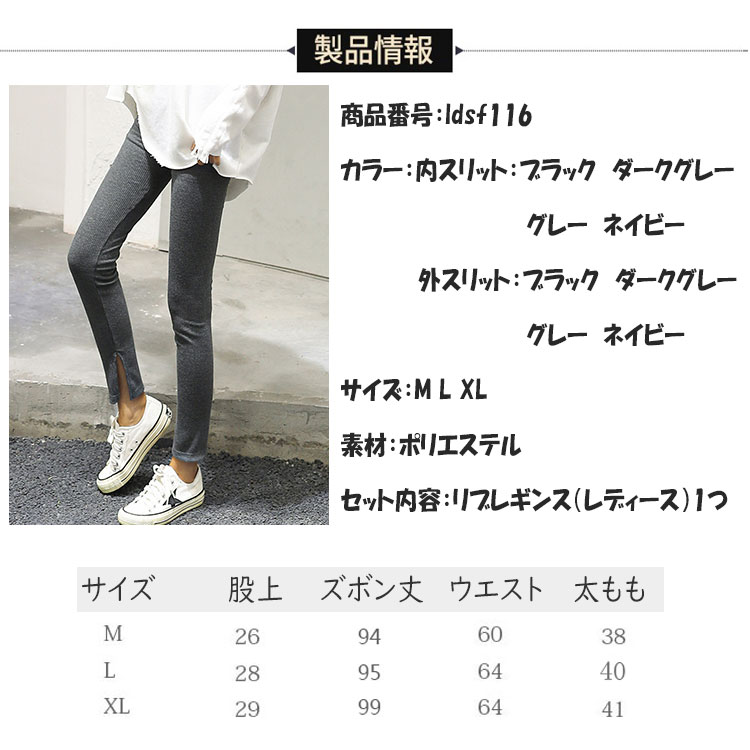 レギンス リブレギンス レディース リ レディース 靴下 レッグウェア スパッツ レギンス 続々入荷中 内スリット:ブラック 内スリット:ダークグレー 内スリット:グレー 内スリット:ネイビー 外スリット:ブラック 外スリット:ダークグレー 外スリット:グレー 外スリット:ネイビー M L XL