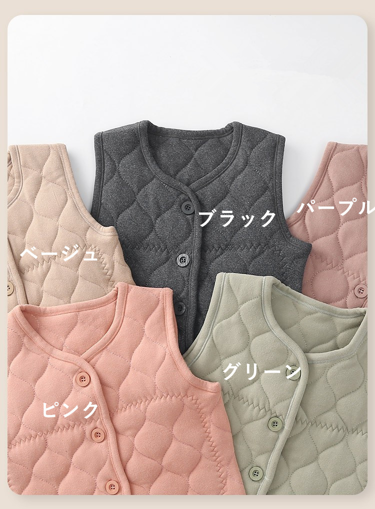 キルティングベスト アウター リンクコ キッズ ベビー マタニティ 新登場! ブラック ベージュ パープル ピンク グリーン 73CM 80CM 90CM 100CM 110CM 120CM 130CM 140CM 150CM 160CM 170CM