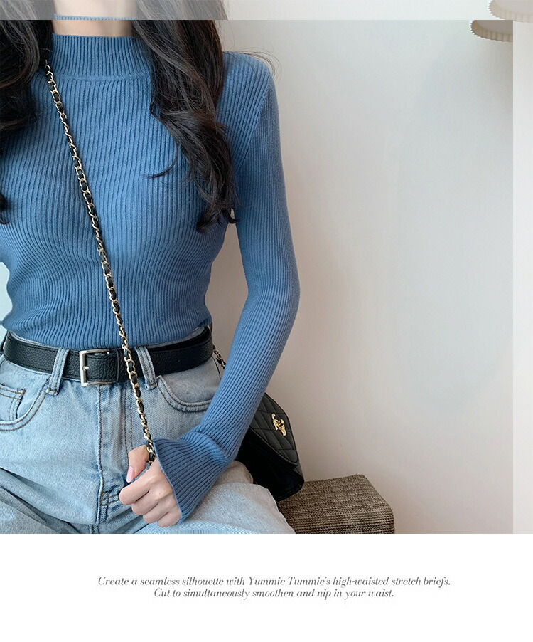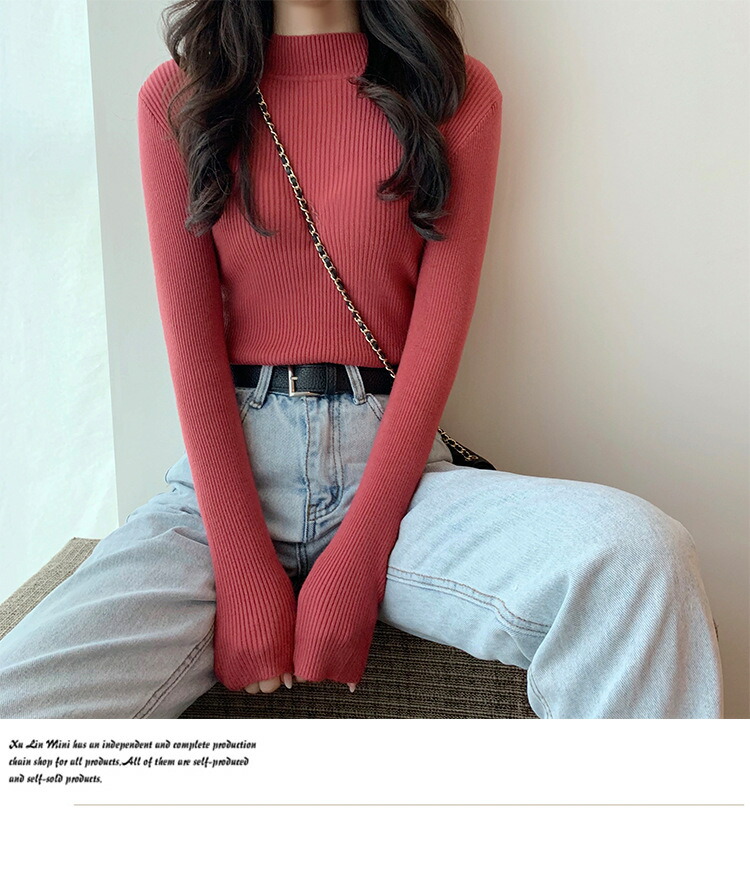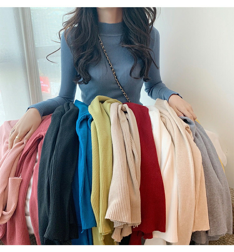 長袖 リブニット リブセーター レディ トップス ニット セーター セーター 豊富 ブルー ワイン ピンク レンガレッド グレ- ブラック カーキ コーヒー ダークグリーン